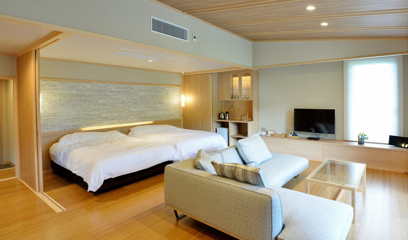 No two rooms are the same at Byakudan, meaning you are guaranteed to find something to your liking. Authentically Japanese, they vary according to tatami, that is, the number of bamboo mats that cover the floor. Alongside the tatami, a minimalist decor helps bring that signature Japanese style whilst cloud-like bedding adds western comfort. Completing the experience, you’ll find open-air onsen baths out on private terraces backed by calming views and scented by that ever-present white sandalwood. In short, you’ll discover a private sanctuary you’ll never want to leave.