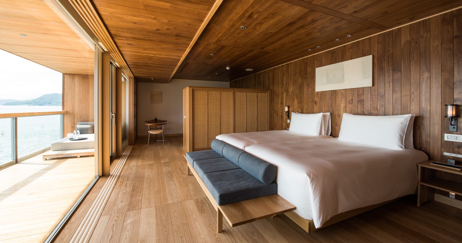 A slice of Scandinavian style floating on Japan’s Seto Inland Sea, guntû is 266-feet of bare wood, fine fare and endless double-take views of Japan’s most overlooked prefecture. Labelled a ‘floating hotel’, rather than a boat, guntû offers just 19 cabins whose design pays testament to the talents of Yasushi Horibe, guntû’s chief designer and recipient of the Architectural Institute of Japan Prize. Though the design may be reminiscent of a Scandi café, everything else about guntû, from the impossibly astute service to the six-seater sushi counter, is unapologetically Japanese.
