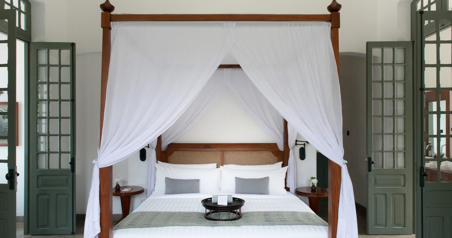 The high-ceilinged suites encircle a large grass courtyard and have private decks from which to admire the views and gaze up at the starry night skies. Fringed by mango trees and with tranquil architecture creating a relaxing sanctuary, each of the suites conveys a deep sense of peace. Located in the centre of the rolling lawns and lush gardens, the villas are all finished in colonial era furnishings and with full staff and private pools – you really will not want to leave your quaint abode.