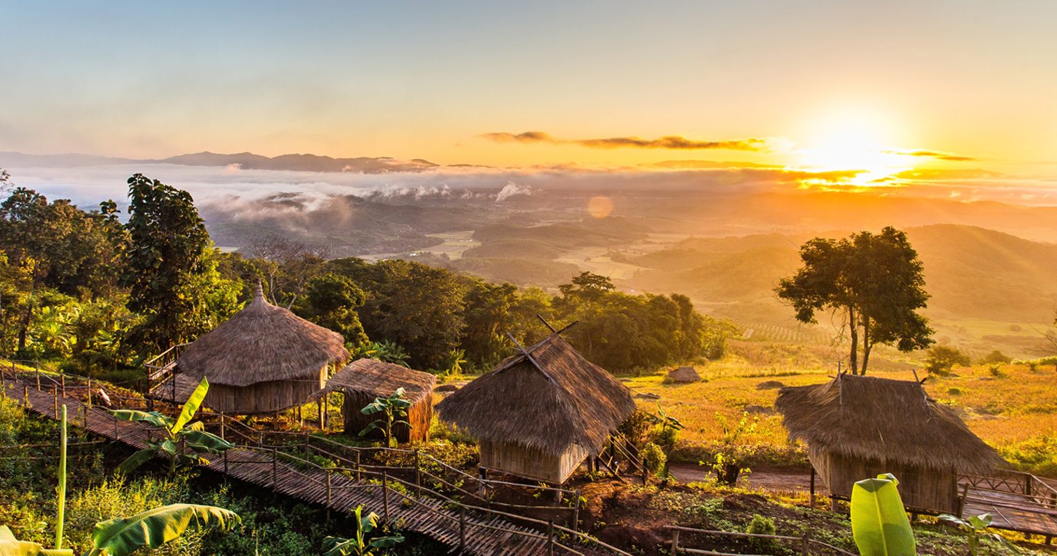 Weaving through the rolling plantations and dramatic hillsides; you’ll be taken up to the misty hills of Chiang Rai on one of the best drives in Asia. Here, you’ll venture into the mountains for unparalleled views of the terraced tea and rice plantations, coffee fields and a meeting with Karaen tribe villages. Meeting such tribes and walking through some of the most beautiful scenery in north Thailand is an absolute must on this trip and we can tailor the trek to be as gentle or difficult as you like.