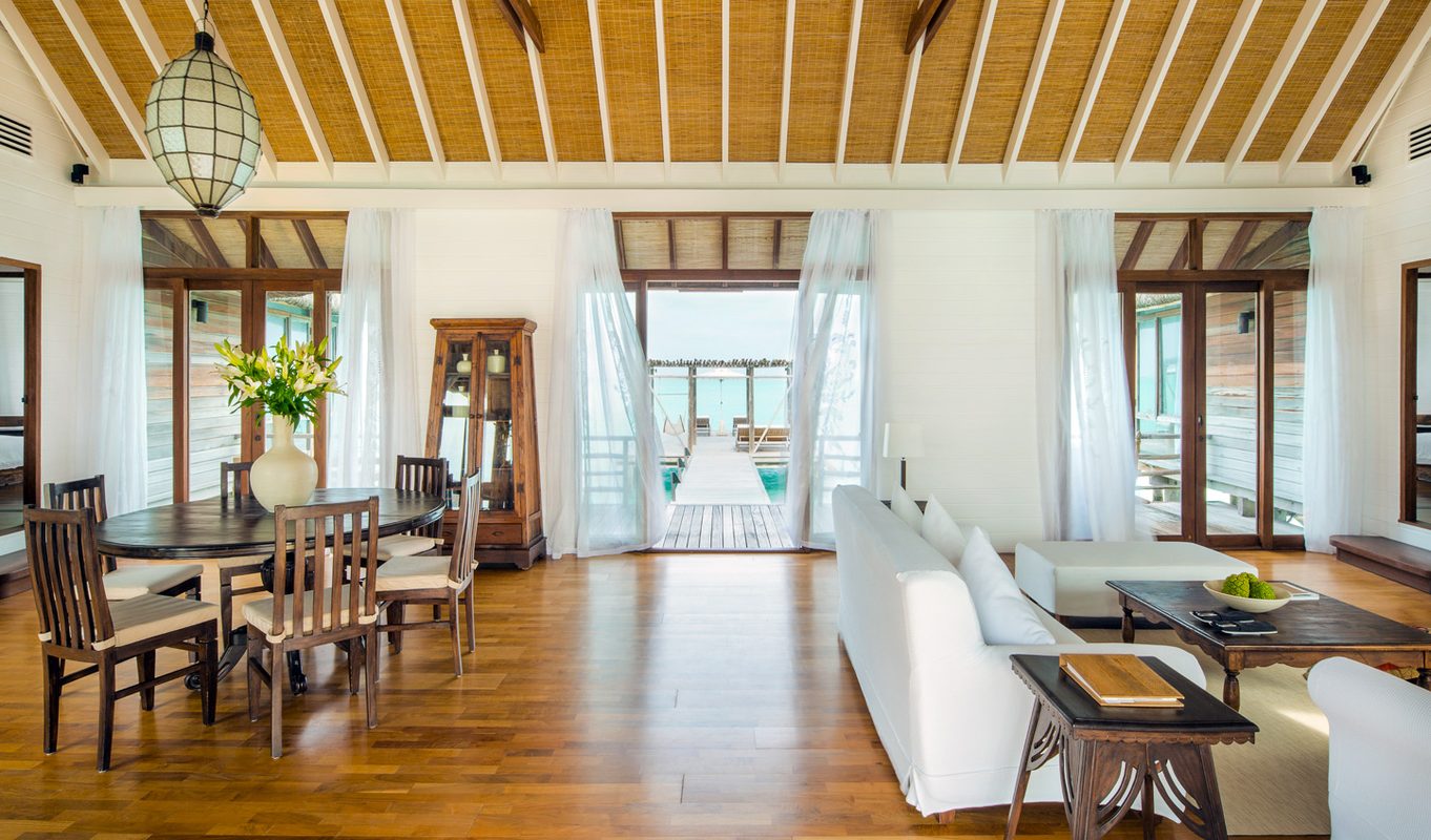 Inspired by the traditional dhoni boats, the rooms at COMO Cocoa Island are completely unique and luxurious. In a contemporary style, the boat-shaped rooms still have a local rustic feel to them as they sit on the peaceful lagoon. Lie in bed and look out over the Indian Ocean and if you can’t resist the temptation, take a step outside onto your private deck and dive into the irresistible azure water.