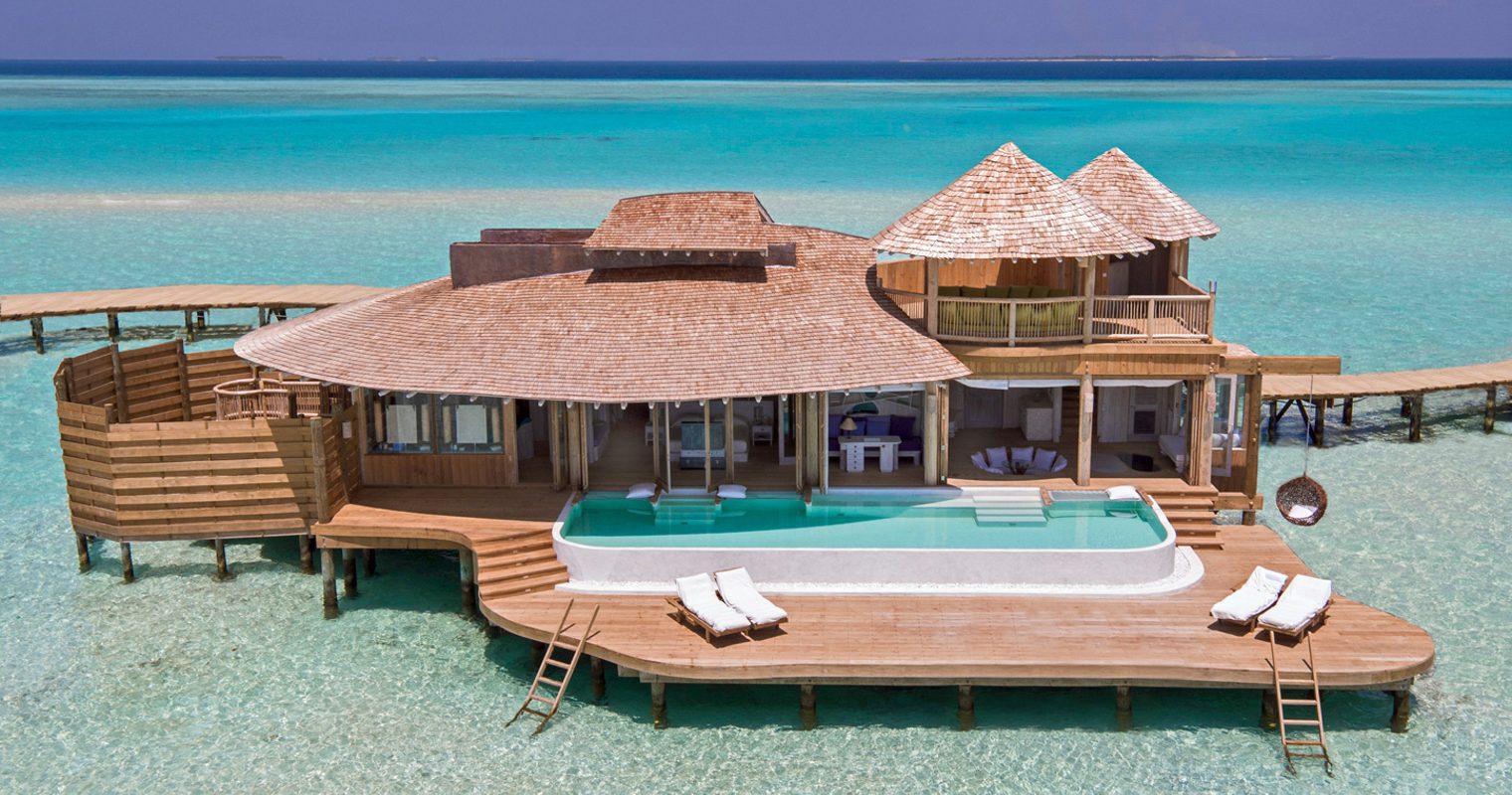 Your week of desert island bliss begins with three nights at the original Maldivian idyll of Soneva Fushi. Just 1,400 meters long and 400 meters wide, Soneva Fushi is barefoot luxury at its most impact. But what this tiny jewel-like isle may lack in size, it more than makes us for in experiences. Drop your bags at one of the gorgeous beachfront villas and take a moment to bury your toes in the sand and take it all in.