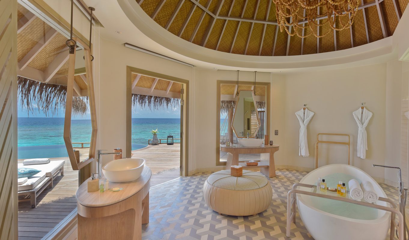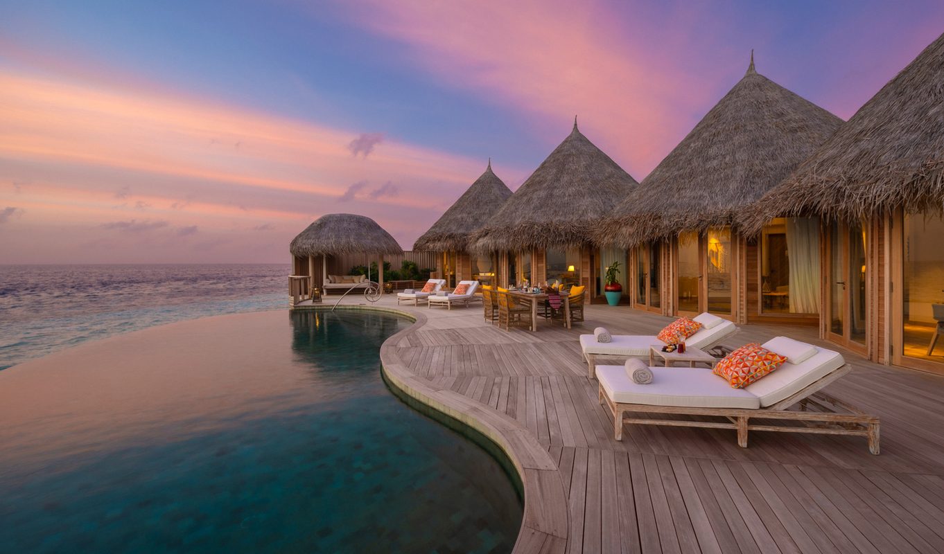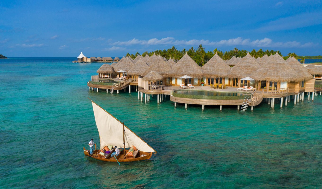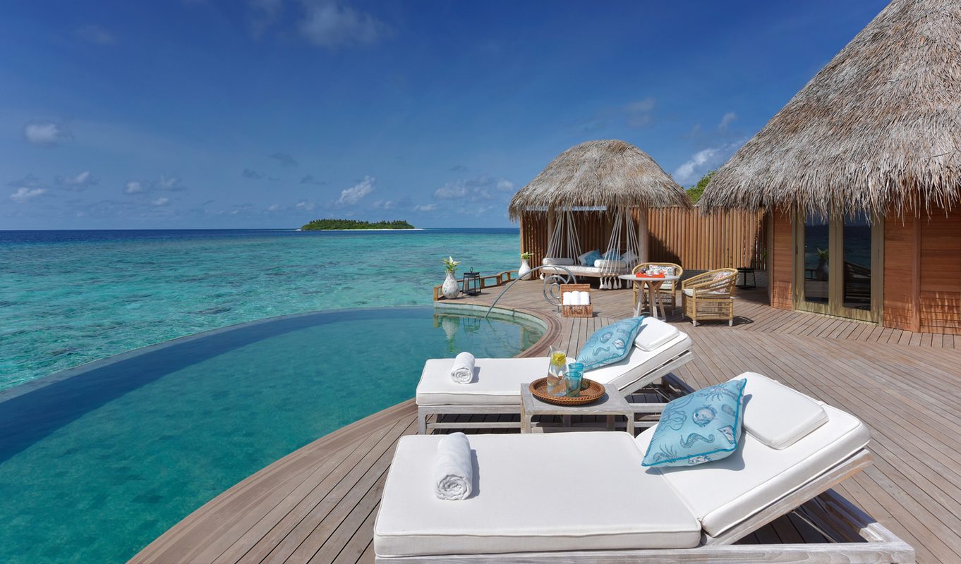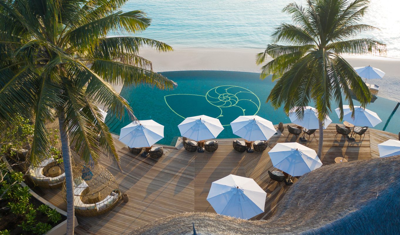 Small, yet perfectly formed, The Nautilus comprises 26 spacious homes – all with private pools and all flooded with natural light and with direct access to the reef. Coconut-thatched houses perched above the water are dressed to impress with glass-bottomed living rooms, allowing you to watch the tropical fish darting around freely below. The open-planned bathrooms are an absolute treat too, boasting a large free-standing tub with sensational views out to the ocean.