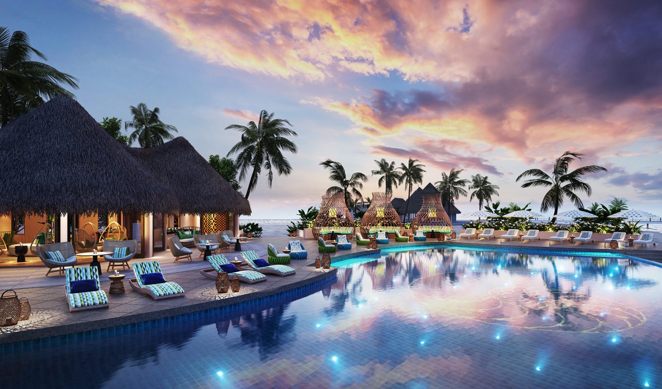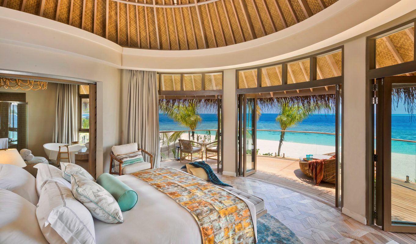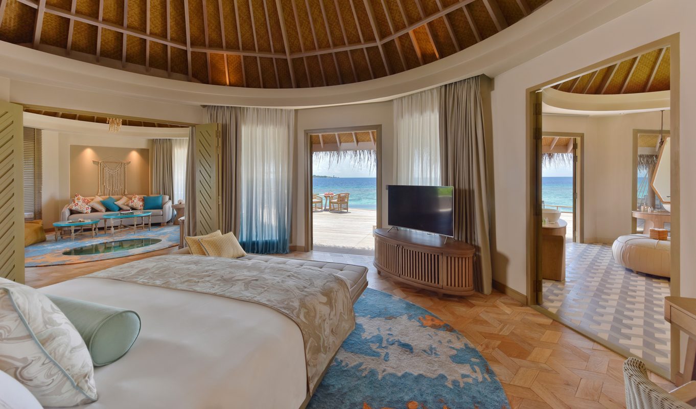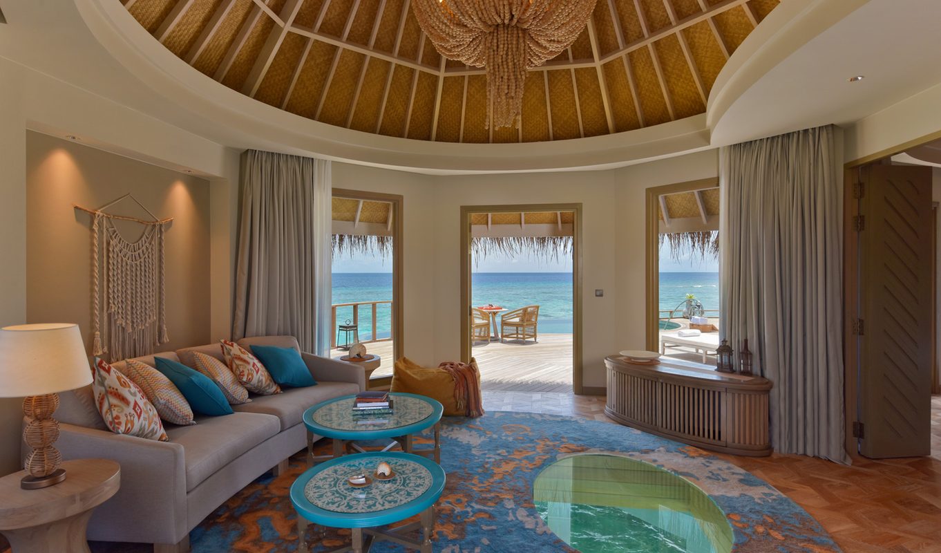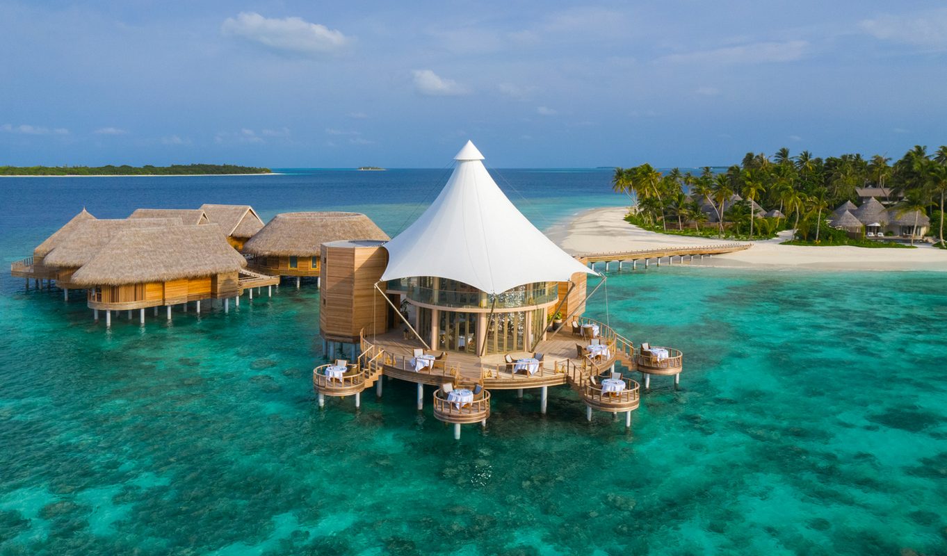 Small, yet perfectly formed, The Nautilus comprises 26 spacious homes – all with private pools and all flooded with natural light and with direct access to the reef. Coconut-thatched houses perched above the water are dressed to impress with glass-bottomed living rooms, allowing you to watch the tropical fish darting around freely below. The open-planned bathrooms are an absolute treat too, boasting a large free-standing tub with sensational views out to the ocean.
