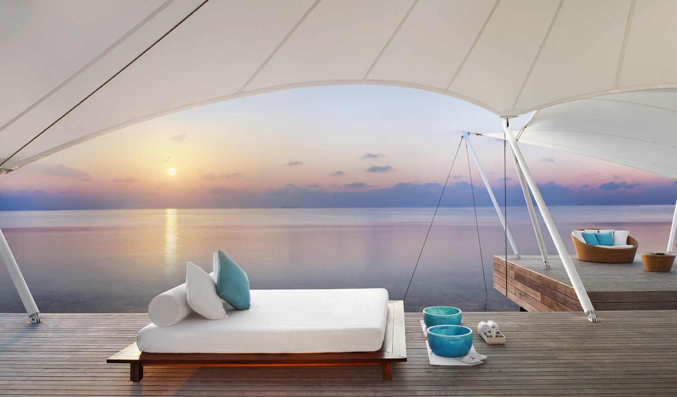 Just a short distance away from Fesdu is Gaathafushi, the retreat’s own private secluded island. We love the overnight ‘Robin Crusoe’ experience – dropped off on the island you’re left with a phone and then deserted in what is truly a slice of paradise, where a bed nestled under a thatched roof and a delicious candlelit dinner for two (or more) awaits. And that’s if you’re not making cocktails with your own shaker set back in your beautiful room.