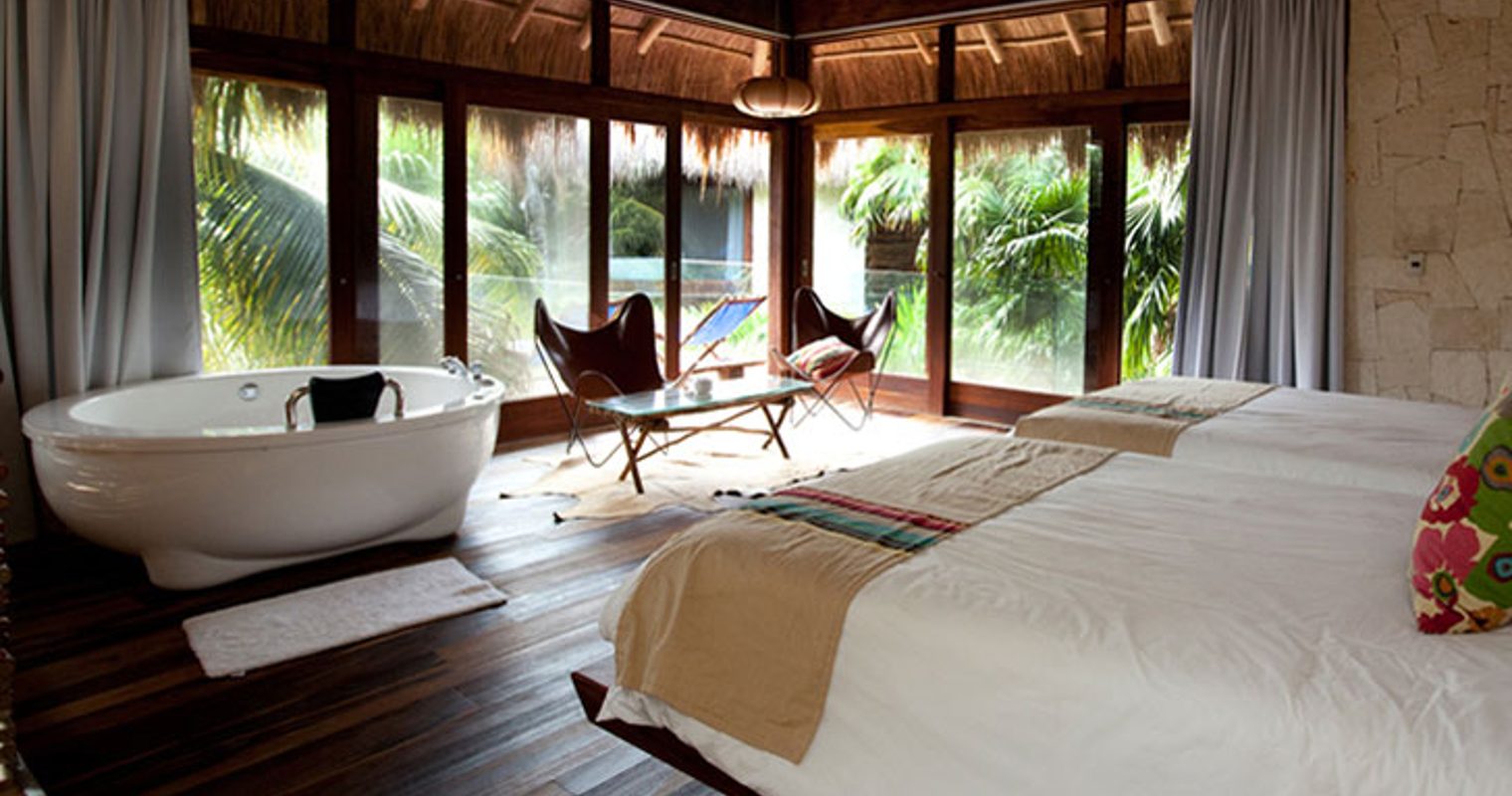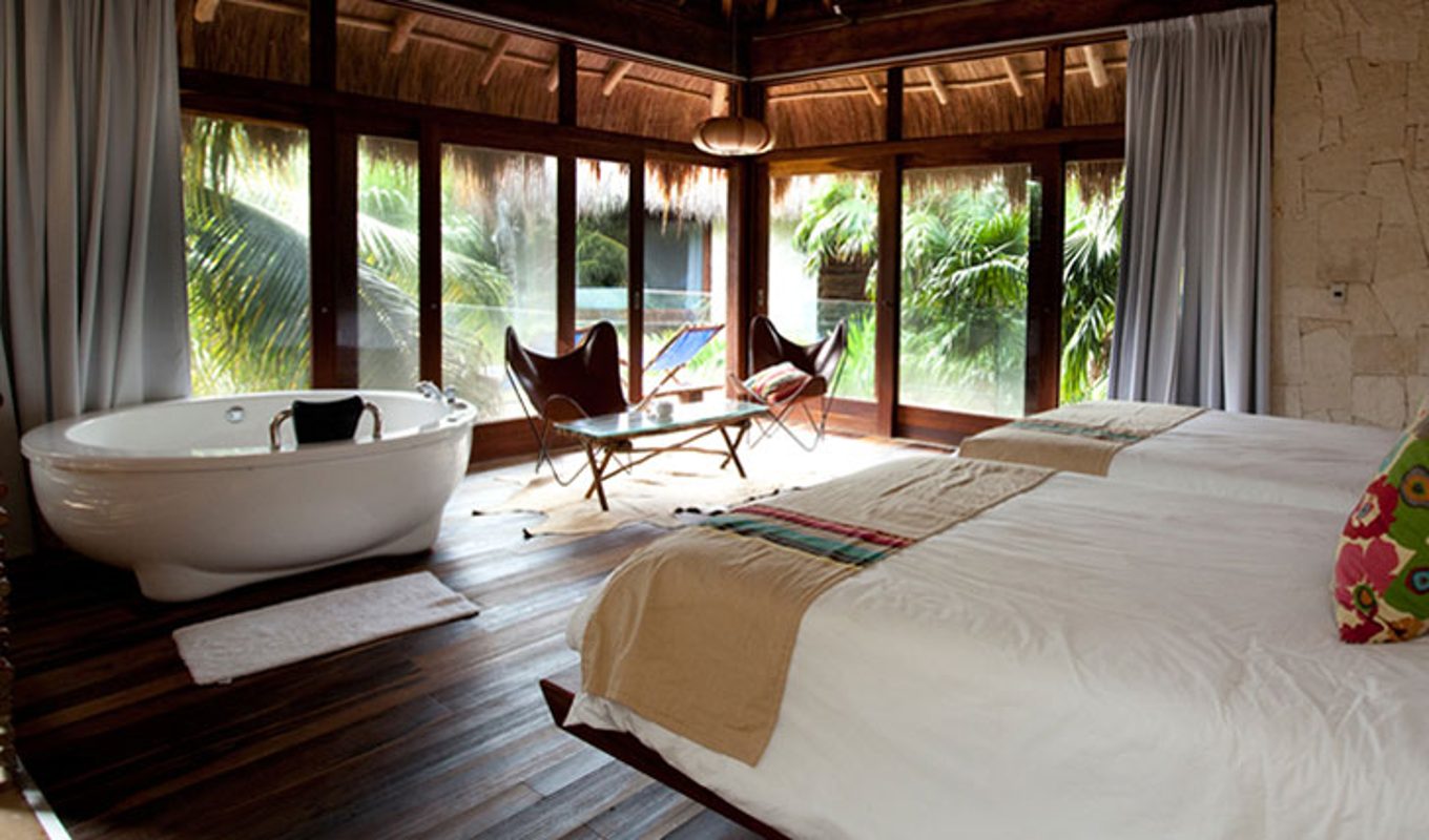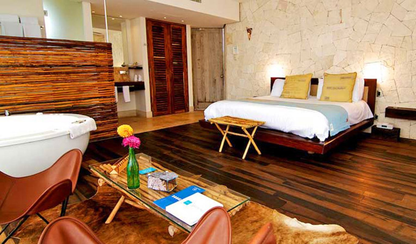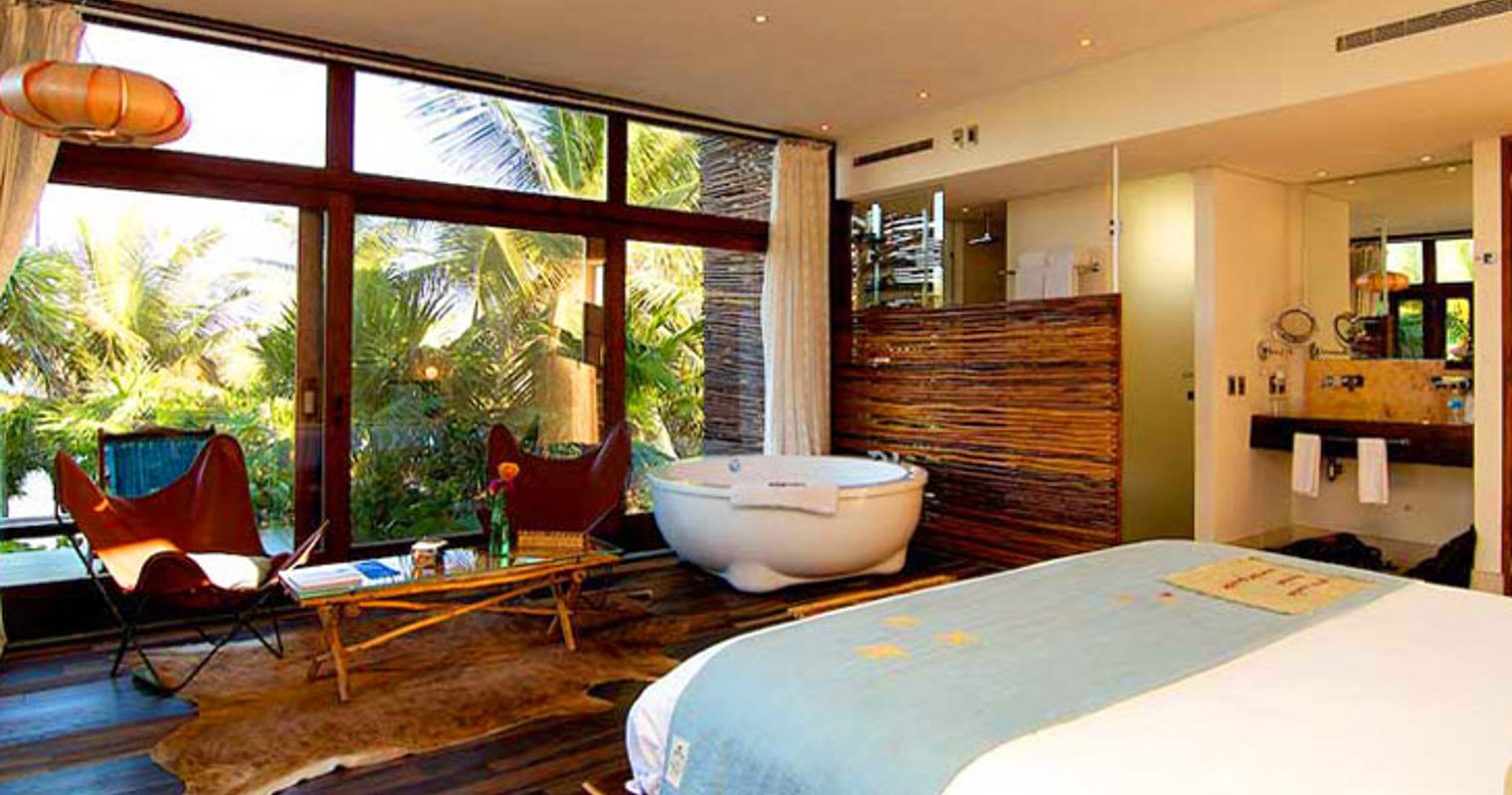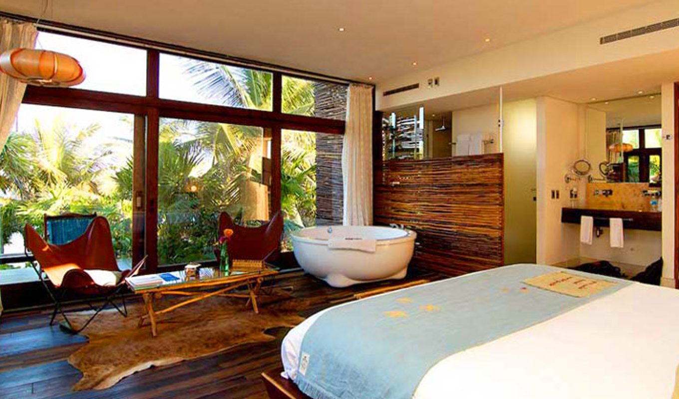 Be Tulum’s location has to be experienced to be believed, and only an hour and twenty minutes drive from Cancun International Airport you’ll be on the beach in a flash. Swaying palm trees herald the first glimpses of the hotel from the alabaster sands. As you get closer, the first hints of the hotel’s cutting-edge design begin to emerge from the treeline. Step up from the beach and you’ll find yourself in the beautiful wood-floored restaurant, overlooking the ocean. On top of this, the sea-cliff town of Tulum is just around the corner.