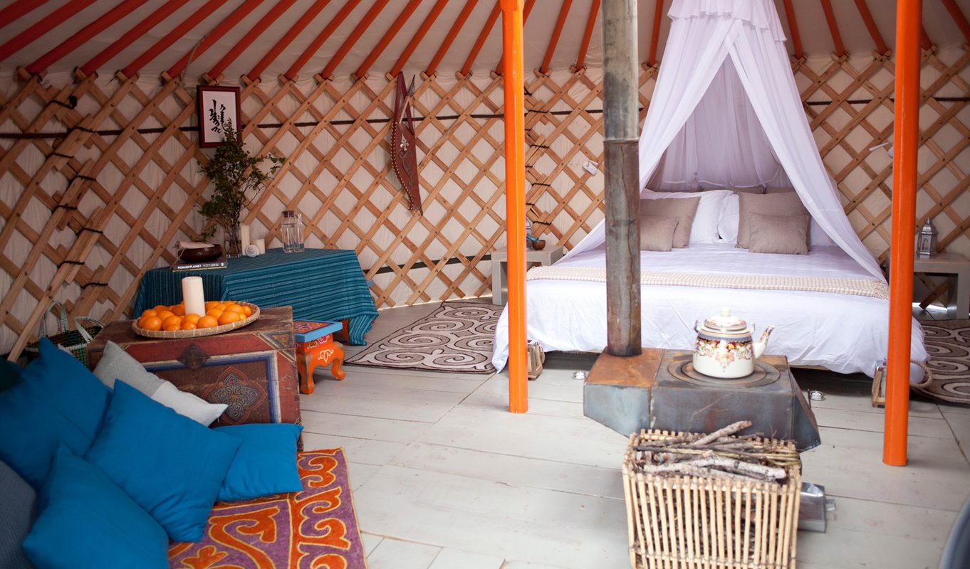 The next morning, you’ll head through the high valley walls in Yolyn Am National Park into its icy canyons before flying back to Ulaanbaatar and heading out east to the iconic statue of Chinggis Khaan on horseback. Here, you’ll make like Khan himself and saddle up your steed to make your way by horseback through Gorkhi Terelj National Park. Ride over mountain passes, across a river and through wooded glades and flowering meadows, before coming to the site of a Shaman Ovoo, where it is customary to add a rock and a circle for good luck. After several hours’ horse trekking, your camp tonight brings a touch of eco-luxury. Tucked away in a protected area of Gorkhi Terelj, Jalman Meadows Ger Camp offers a tranquil getaway in the depths of Mongolia where you can spend your days rafting along the Tuul River before relaxing in the library ger with a traditional game of Ankle Bones.