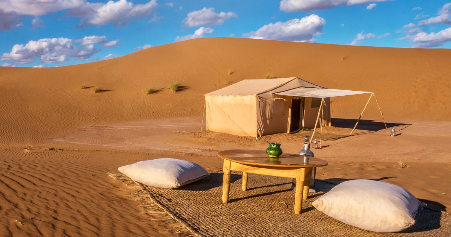 From Zagora, you’ll then travel south to Tamergroute, home to one of the largest Sufi brotherhoods. Here, you’ll visit the zaouia Islamic cooking school and the Koranic library before you come to reach the end of the tarred roads at M’Hamid. From there, there’s only one thing to do; jump into your private 4×4 for an off-road adventure through the Sahara Desert to your luxury desert camp at the heart of the dunes of Erg Chigaga. Settle in beneath the canvas and breathe in the solitude before stepping back in time and seeing the desert as its been seen for centuries – by camelback. Saddle up atop your desert steed and walk slowly across the dunes, marvelling at the way the sun sinks down to kiss the sands in a sunset you won’t soon forget.