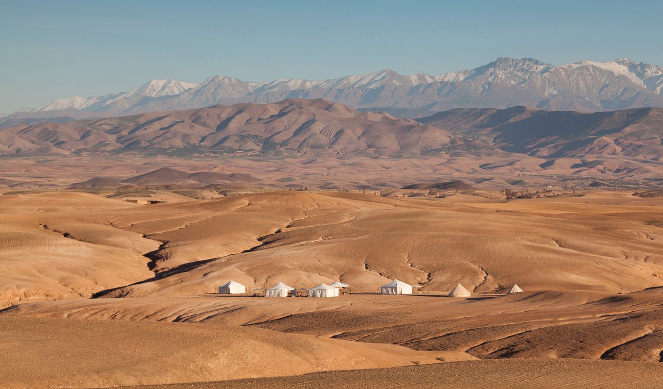 The statement ‘ever-changing scenery’ sounds tired, bear with us though as staying at Scarabeo Camp even just twice would see you looking out of the same tent but at an entirely new scene. Once every six months, the well-travelled and knowledgeable owners up-sticks and move the entire camp to the optimal spot for the coming seasons. The Oriental style encampment is an eco-tourist’s dream, with a plethora of measures designed to lower the impact of your stay, although don’t for a second think that this means any reduction in lavishness for you. The aroma of fresh bread will beckon you from your desert den each morning and the sight of the Atlas Mountain range, complete with snow-capped peaks, will enliven the weariest of souls.