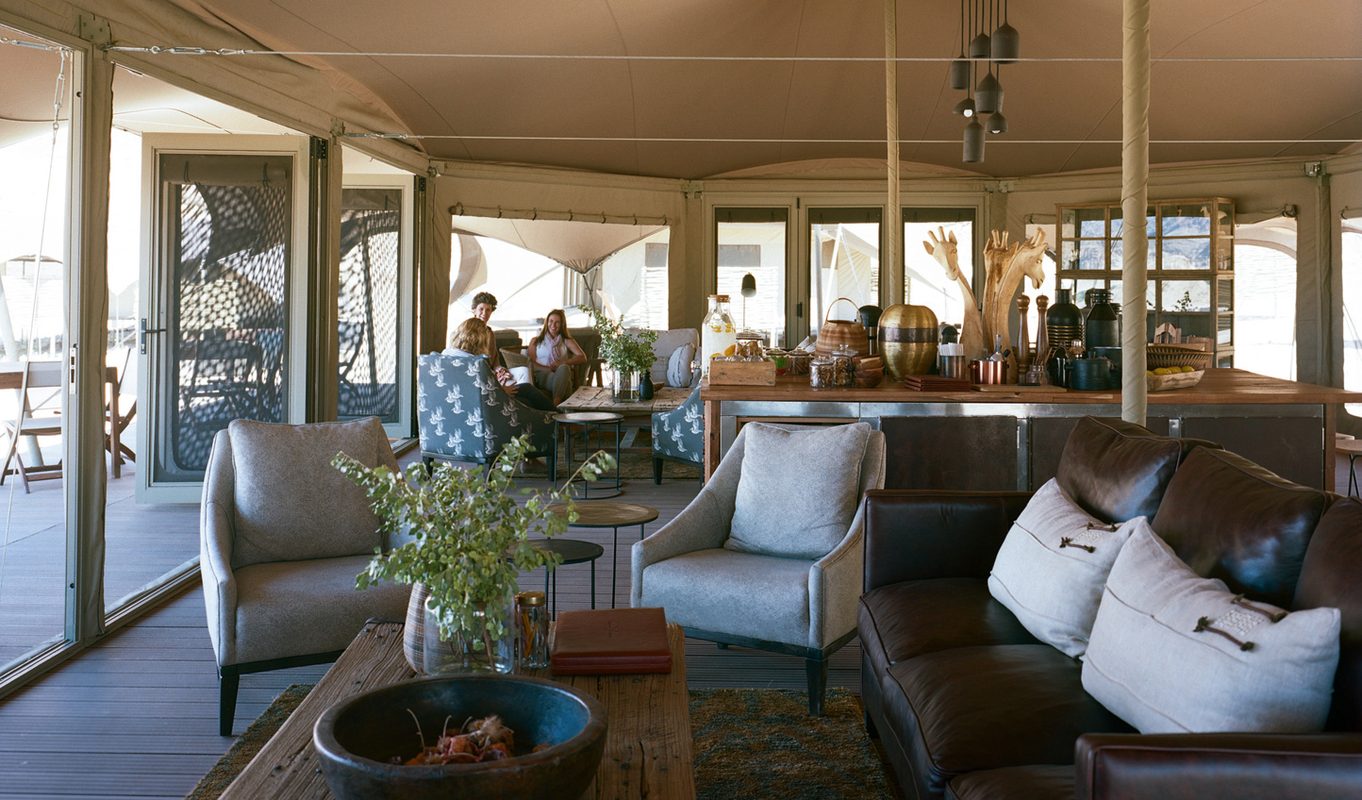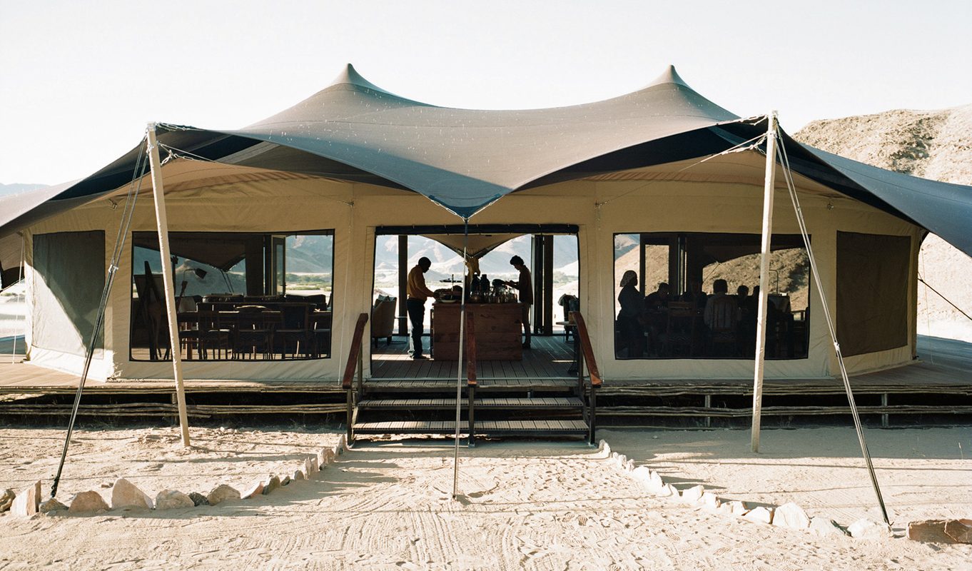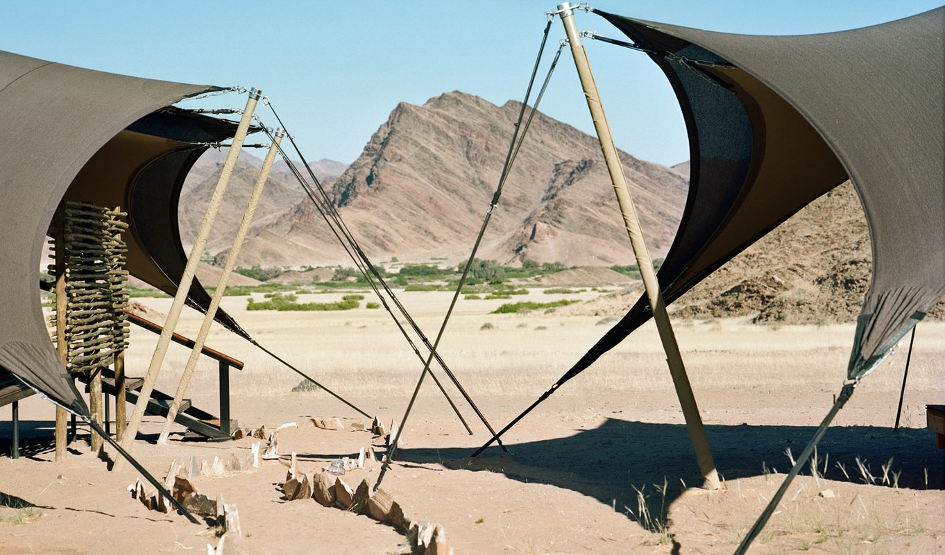 A set of six canvas sails soaring elegantly through the desert, the rooms at Hoanib Valley Camp blend seamlessly with their environment to create an intimate affair connecting you to the wilderness. Step inside and discover a palette of colours, textures and patterns which have taken inspiration from the Hoanib. Rich ochre shades reminiscent of the dunes, geometric patterns that evoke the connection to the local giraffe population and a simple aesthetic that never detracts from your surroundings. Complete with ensuite bathrooms and outrageously comfortable bedding, the safari experience is complete.