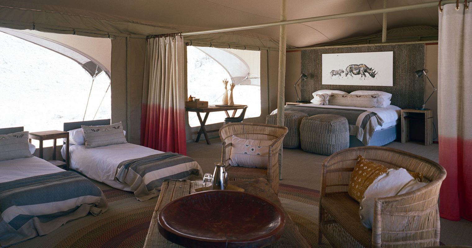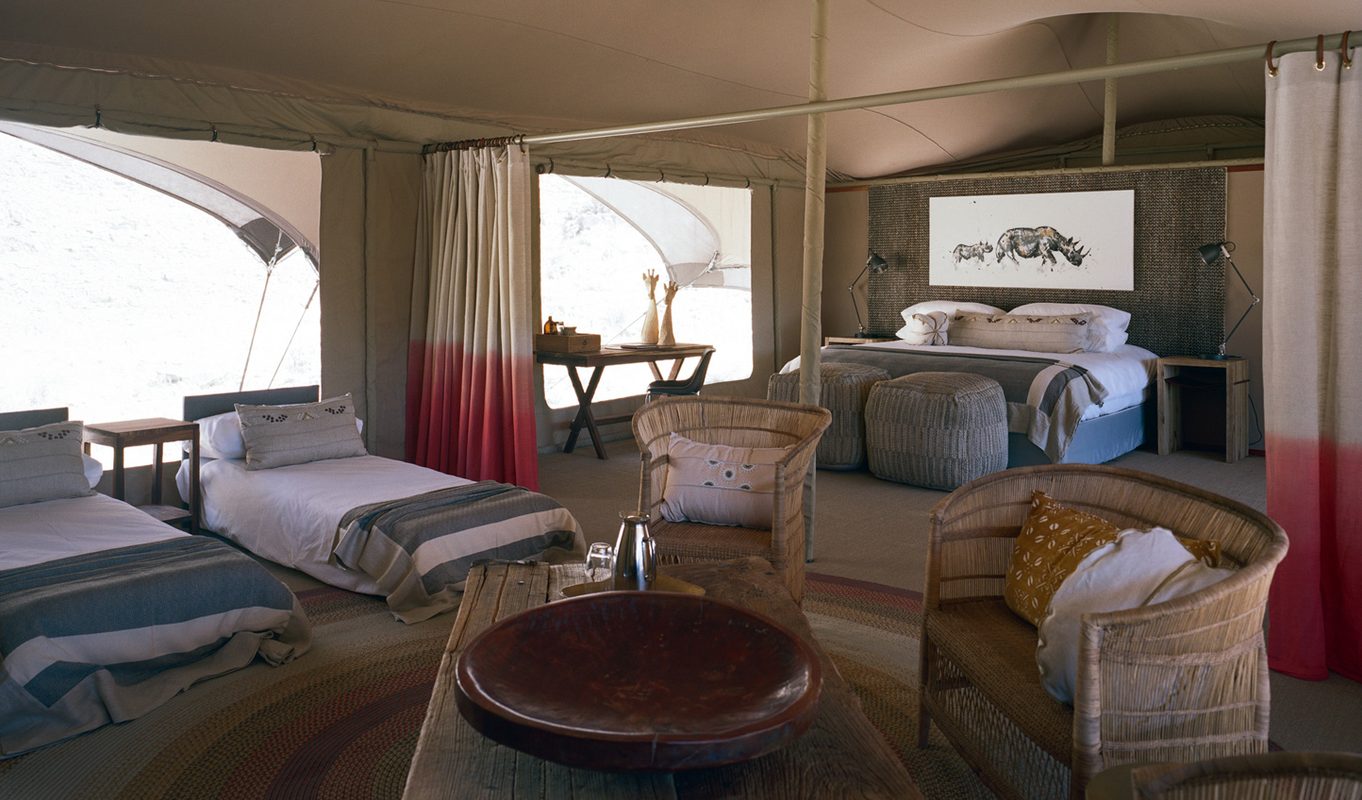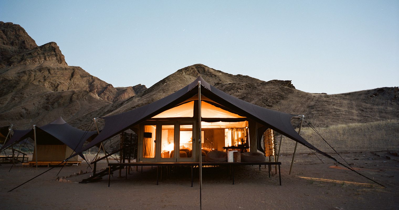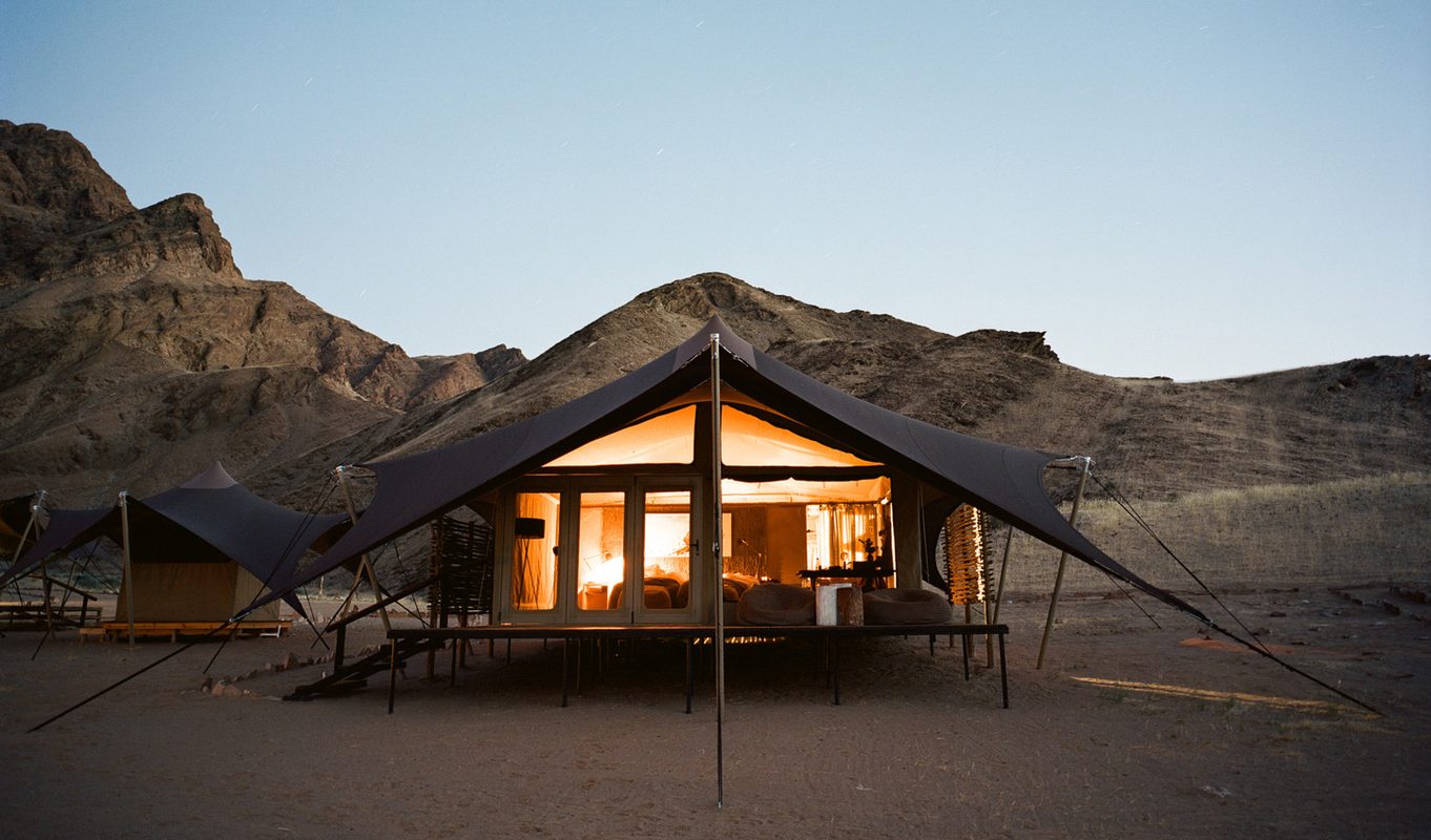 Where towering mountains run into sweeping dunes and huge expanses of desert come together with unique wildlife and nomadic tribes, Hoanib Valley Camp can be found at the heart of it all. Remote and luxurious, this is a whole new side to Namibia. Spend your days here in the company of researchers tracking endangered rhinos and monitoring desert-adapted giraffes, before spending an afternoon in the company of the local Herero people and an evening dining beneath the stars before retreating to the comfort of one of the six chic tents.