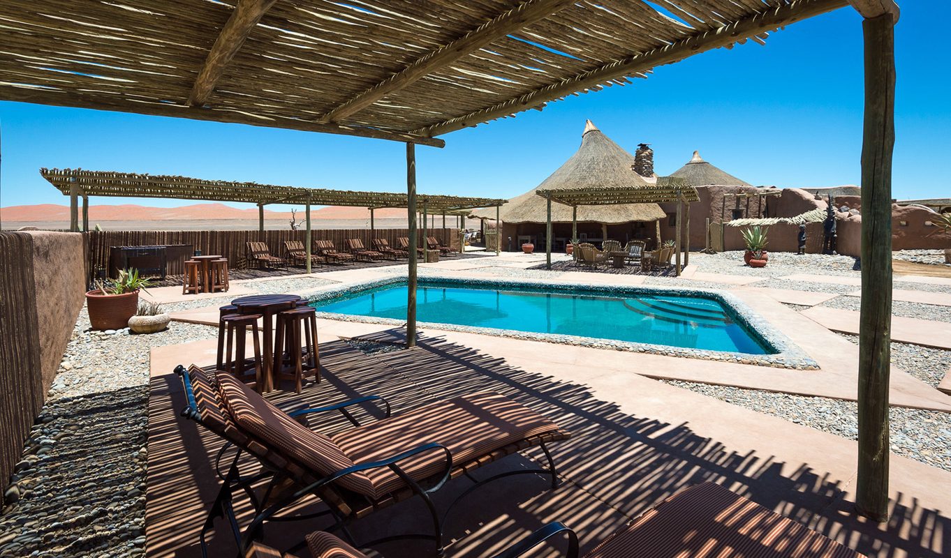 Located within the arid Namib Desert on the 37,000-hectare private Kulala Wilderness Reserve on the border of Naukluft Park, the feeling at Kulala Desert Lodge is one of complete tranquillity. You may be in the middle of the desert, but the lodge is easily accessible by one hour flight from Windhoek airport, with the tiny airstrip only 30 minutes drive from the camp. Alternatively, take the scenic route and explore Namibia with a five-hour drive through the stunning African landscape from Windhoek airport.