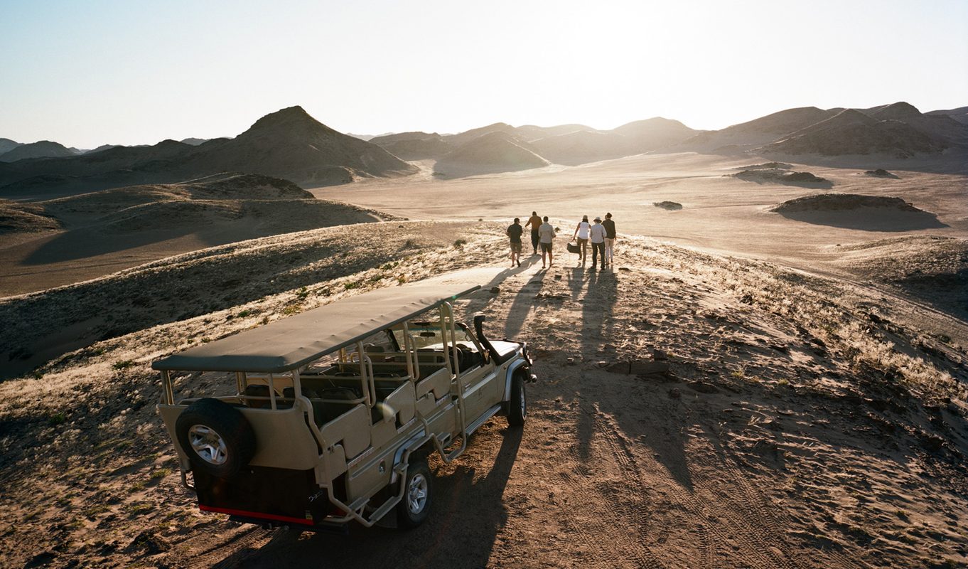 After two days walking through history on the Skeleton Coast, you’ll fly back inland to Sesfontein to check in at Hoanib Valley Camp. Perched on the banks of the River Obias and amid a brooding mountain backdrop, Hoanib invites adventure with a game drive as the preferred means of arrival. Settle in before the temptation of exploration that the surrounding plains, dunes and mountains ignites becomes too much to bear and draws you back outside. Your next few days here will be filled with game drives taking in desert lions and elephants, as well as the chance to get involved in rhino tracking projects and visit the Giraffe Conservation Foundation. A more personal look at the wildlife of Africa, you’ll get the chance to chat with the team – and even meet the giraffes if you’d like.