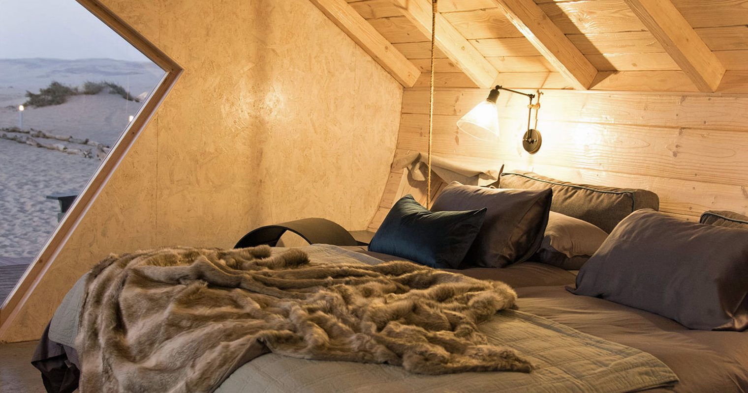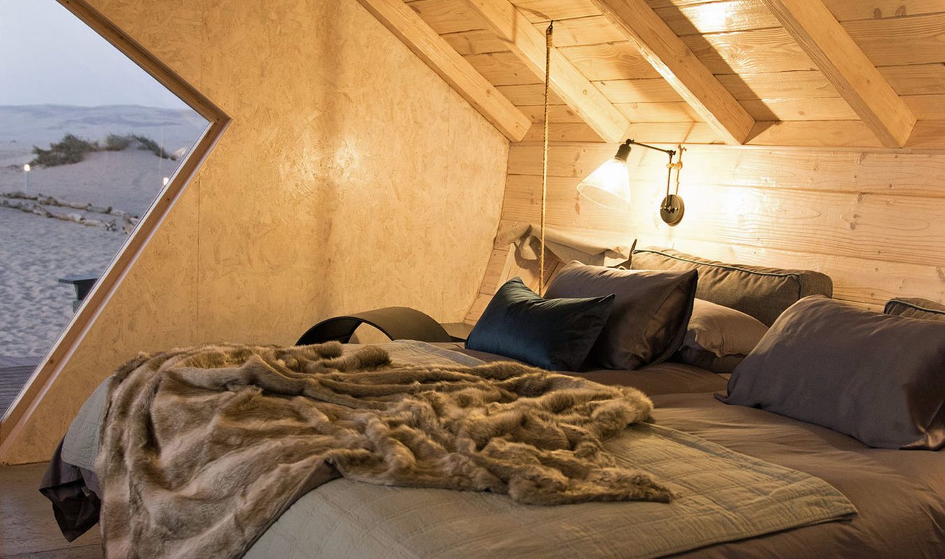 The ten lodges lie few and far between along the sands of the Skeleton Coast, promising the ultimate seclusion and privacy. Inspired by the famous shipwrecks that litter the shores, each wooden lodge is designed to look like a shipwreck jutting out of the sands. Step into your solar-powered lodge, get the fire going and gaze out of the panoramic glass windows as the sun begins to set and the golden sands turn burnt orange. Drift off to sleep beneath swathes of fur and to the sound of nothing but the crashing waves of the Atlantic and the cackling of hyenas in the distance.
