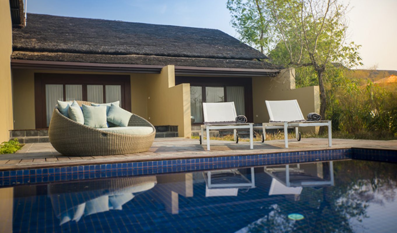 We love the Presidential Suite, Rapti Mahal with spectacular views of the Rapti River, after a day exploring unwind on your private viewing deck with plunge pool. Luxury Rapti Villas are decked out in pastel hues that create a calming sanctuary in the middle of the jungle. Each villa features spacious living areas with sprawling views of the Rapti River and the National Park. With private plunge pools in every suite and luxurious bathrooms adorned with traditional Nepalese stone spouts , you are tempted to while away your afternoon listening to the rhythm of the flowing river.