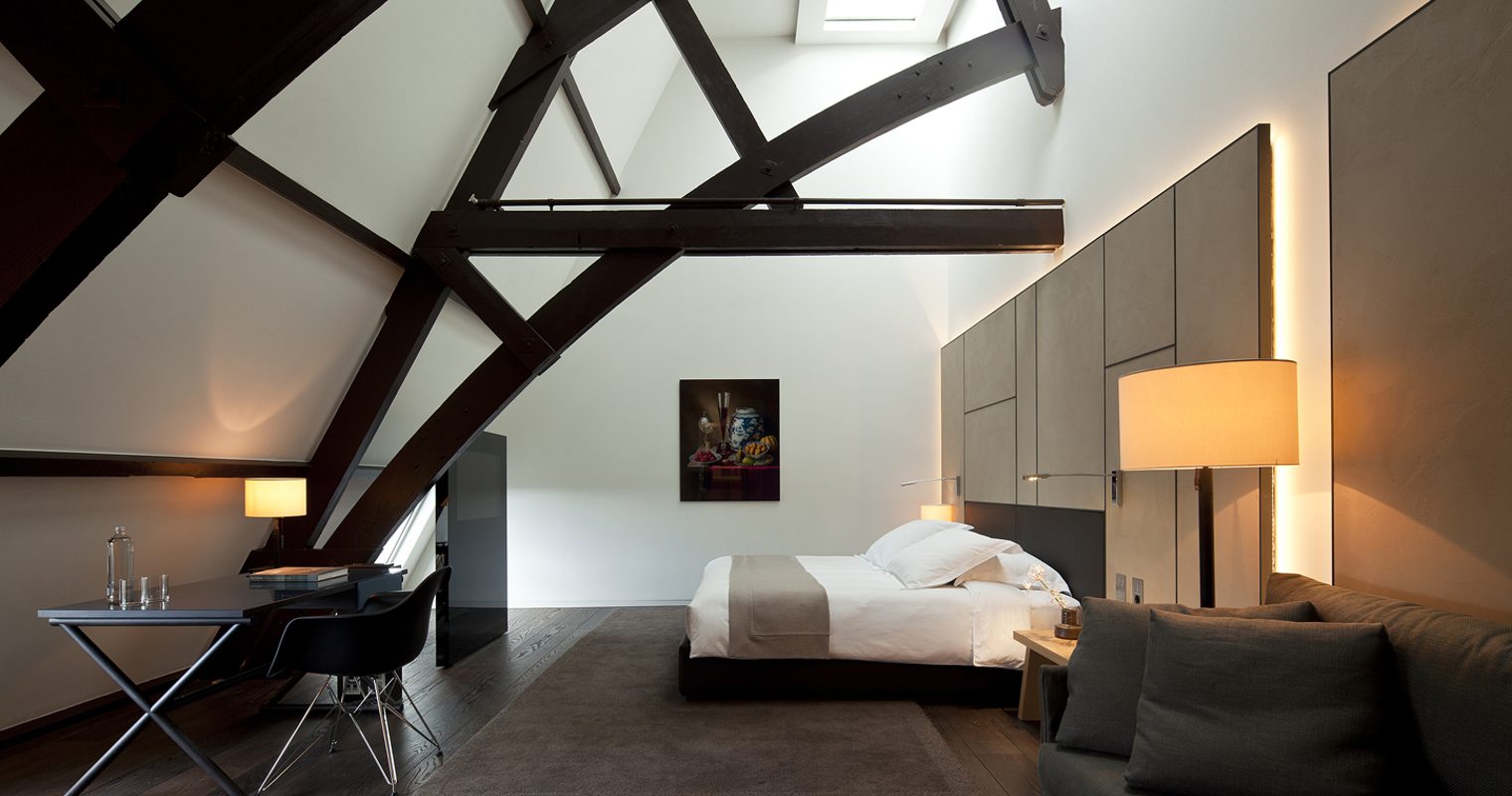 At the Conservatorium Hotel, having your room on just one floor is so old hat – here, they’re all about the duplex. Super spacious and with jaw-dropping views over Amsterdam, what’s not to like? But stunning design doesn’t end there. For some of the best views over the city, opt for a Rooftop or Concerto Suite. Tucked in the eaves of the hotel, enjoy beautiful period details as daylight floods in through historical architectural windows. If a duplex isn’t quite enough though, go all out with the I Love Amsterdam triplex and enjoy 360-degree views of the Amsterdam skyline from your private rooftop terrace.