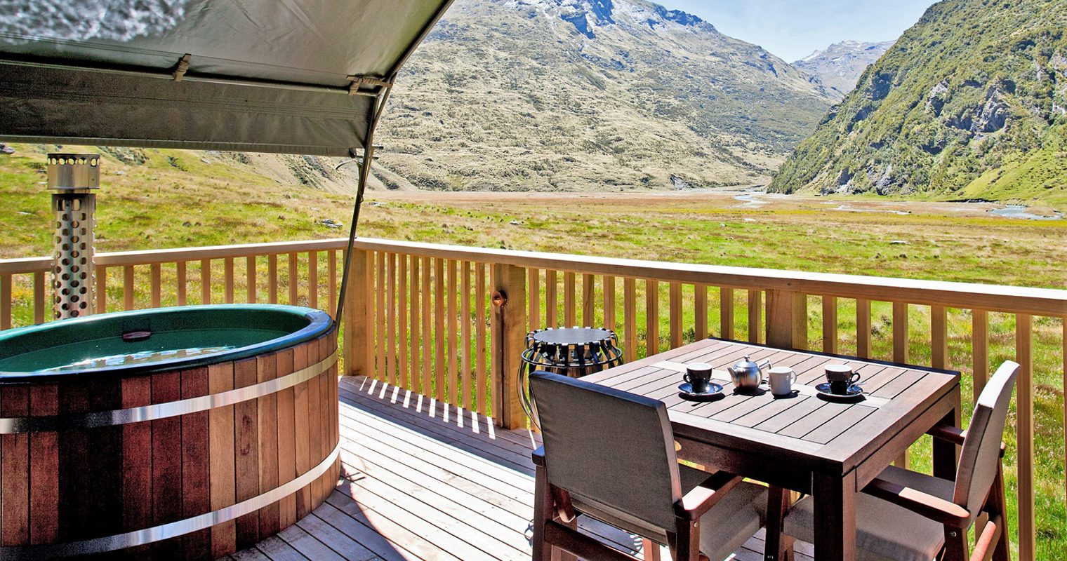 After resting your head back at the Station, it’s a jaw-dropping Heli drop off to the remote peak of Mount Burke. At 1535 meters, the views will literally take your breath away, stop and soak up the scenery before hopping on your bikes that are ready and waiting. A four hour downhill bike is next, crossing in between the stunning glassy blue waters of Lake Wanaka and Lake Hawea then refuel on a gourmet picnic in one of the most picturesque locations on earth. After this adventure packed day, head back to your enormous canvas safari tent and take a dip in the hot tub while you take in the stunning surroundings. Wake up raring to go, this time to the Remarkables Mountain Range, your private helicopter will whisk you up to 2300 meters and on the way check out the bird’s eye view of the Southern Alps below. Tear it downhill on your bikes to a secluded private hut, where you can stay overnight. There is nothing more unique and tranquil than this, with this level of exclusivity you shall be surrounded in luxury while feeling completely alone.