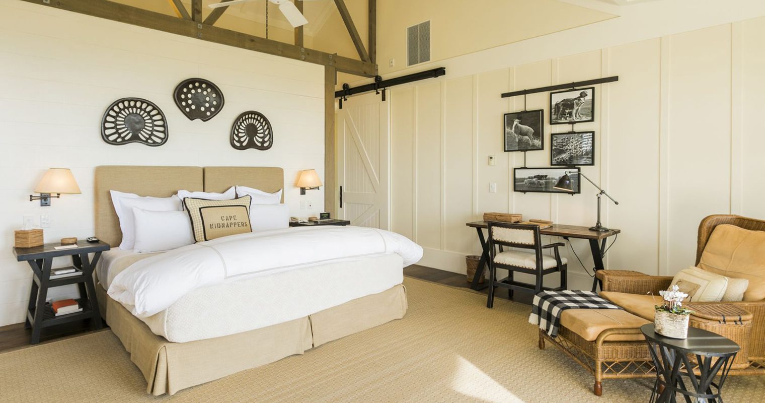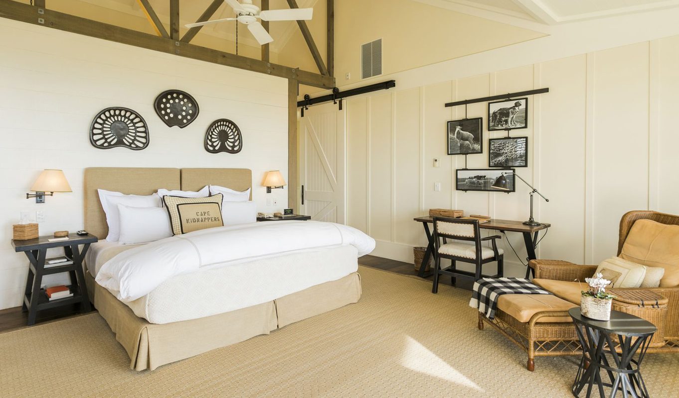 There are 22 cottages, each offering stunning views of the 6,000-acre property. The cottages resemble rustic farm barns from the outside with wooden panelling and feature-barn-doors. Step inside and you’ll be greeted with out-back country style living: think crisp white linen, window shutters and rattan furnishing with all the modern comforts. Sliding white barn doors open up to your spacious bathroom equipped with an oversized bathtub and his and her sinks. For a more luxurious stay, why not treat yourself to the Hawke’s Bay Four Bedroom Villa with its sumptuous lounge, handsome fireplaces and open plan kitchen and dining area; it’s the perfect retreat for that home away from home break.