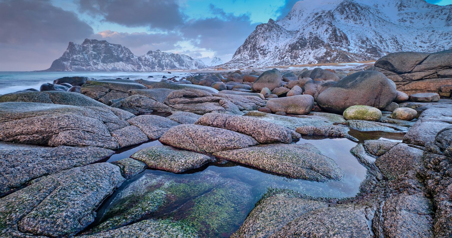Heading deeper through the fjords, a few days later you’ll break through the otherworldly landscapes of the Lofoten Islands. After a few more panoramic runs, you’ll sail into the Grøtøya Straight, pulling up at the stark beauty of the glass-fronted sea cabins of Manshausen. Perched on a rocky promontory in Steigen, this remote design hotel will be your home for the next two nights. Lie in bed each evening looking out the vast picture windows before you and watch the Northern Lights dance across the sky. By day, take to sea kayaks, hike the surrounding peaks or pick up head into the bay for spear and deep sea fishing alike. Far removed from the everyday, the peace and natural beauty of Steigen is a breath of fresh air that will stay with you long after the dreaded flight back home.