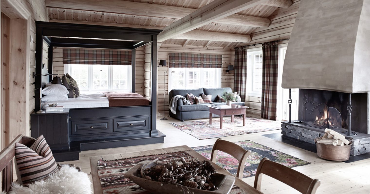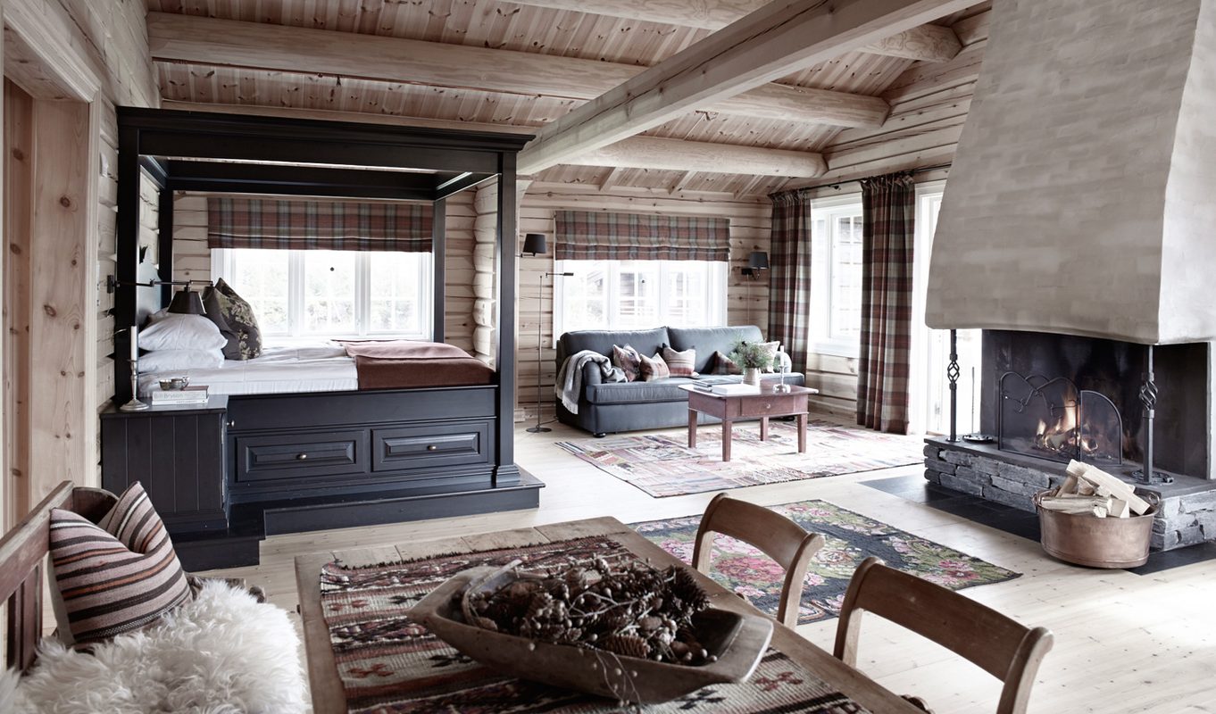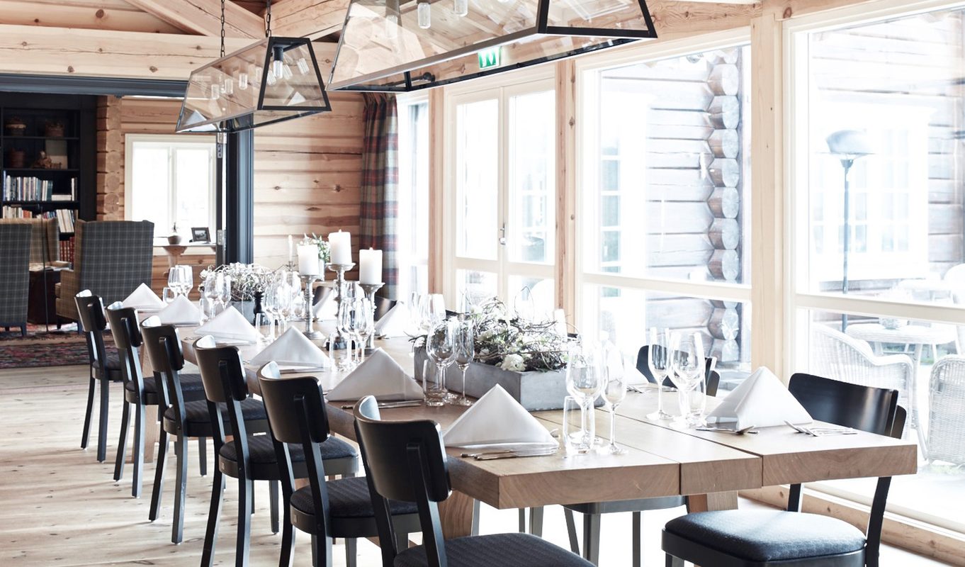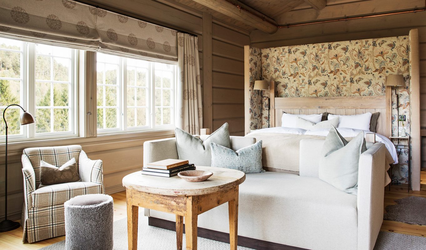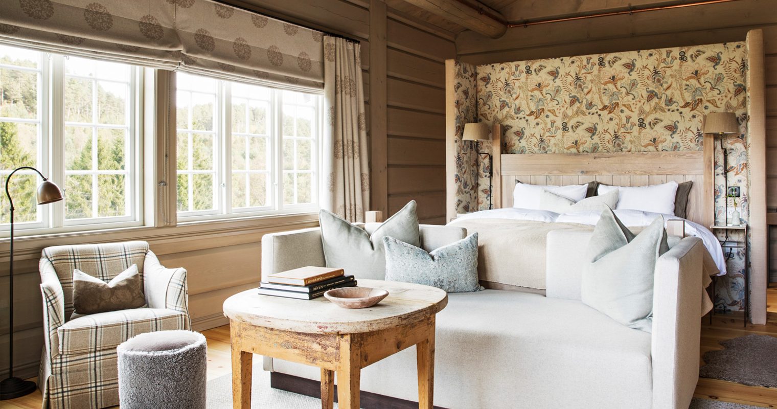 Even the smallest room at Storfjord Hotel offers boundless space in which to relax – with a small lounge and a private balcony from which to drink in the forest or fjord views. Clad in traditional lafta wood, neutral hues are offset by luxurious fabrics in bold checks and whimsical florals whilst designer furniture and freestanding bathtubs sit alongside grand fireplaces and period antiques. We loved the Junior Suites with their huge windows that flooded the room with the gentlest morning light.