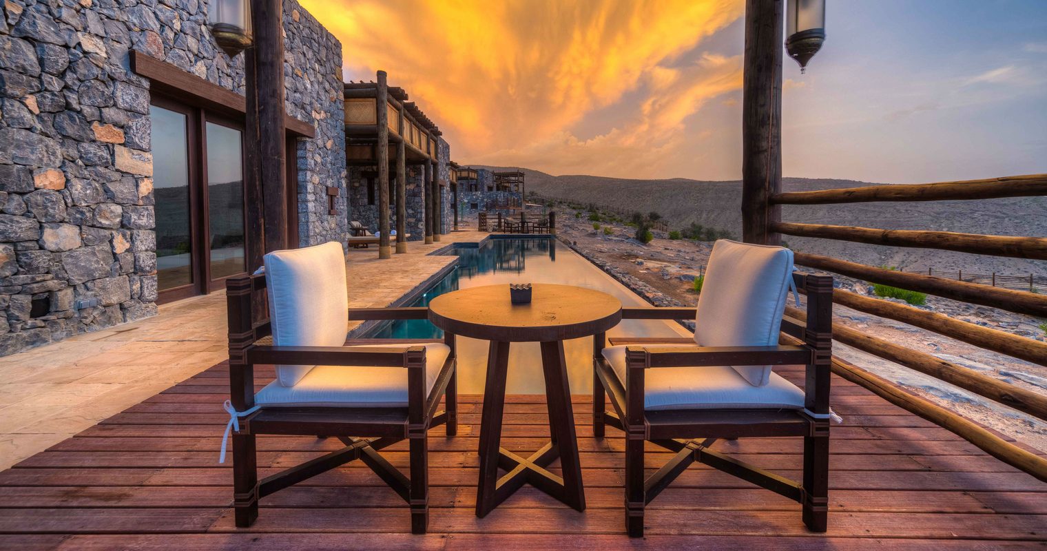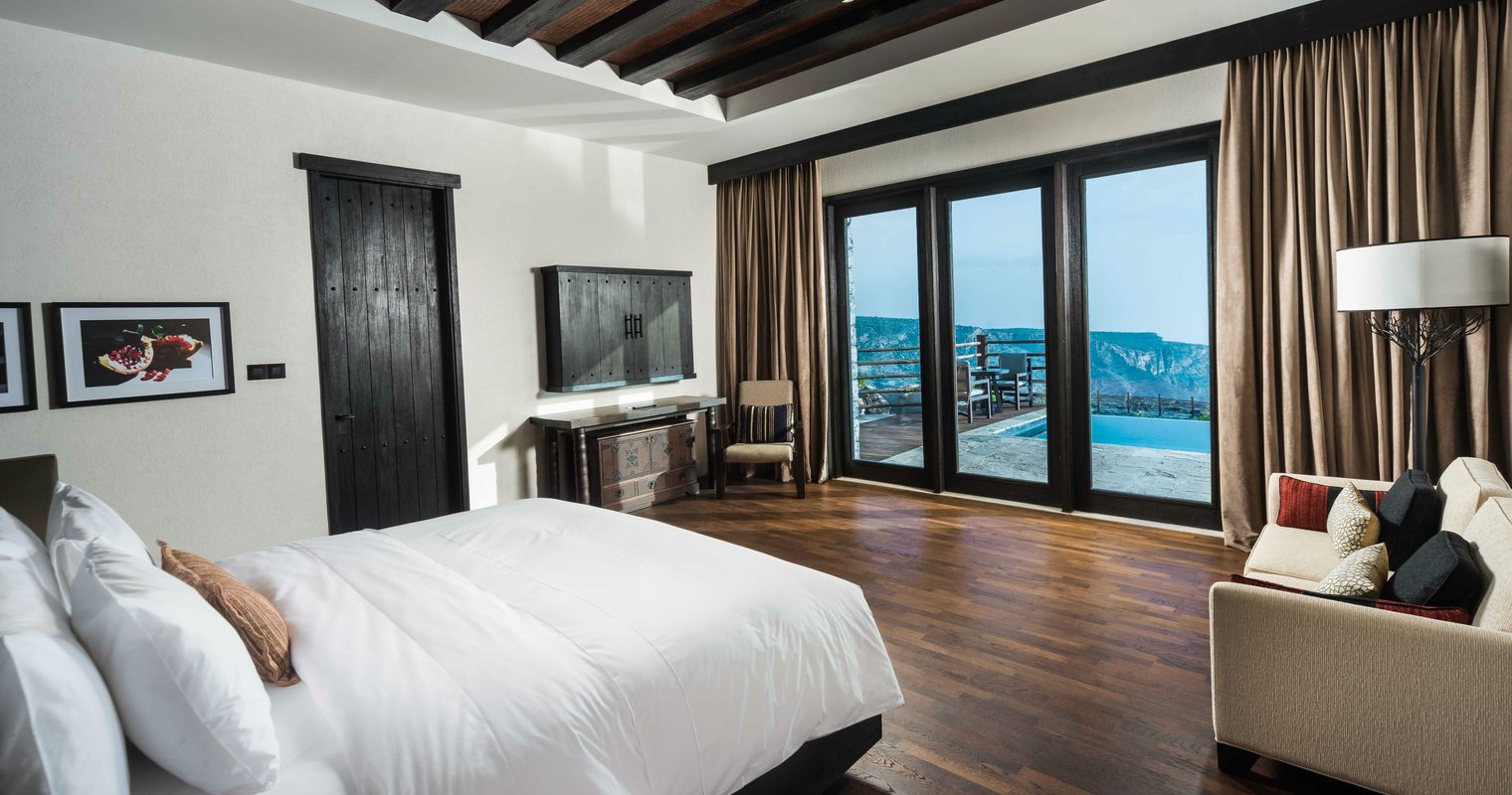 Choose from an array of stunning suites and villas, each with breathtaking views of the dramatic gorge which the Jabal Akhdar perches atop of. The rooms are a harmonious fusion of traditional local craftsmanship and contemporary architecture that creates a uniquely relaxing environment. Think earthy woods and stones with warm coloured rugs that reflect the ethnic influences of the region. Copper ornaments, handmade pottery and hand painted murals of the juniper trees that are native to the area complete the pretty picture.