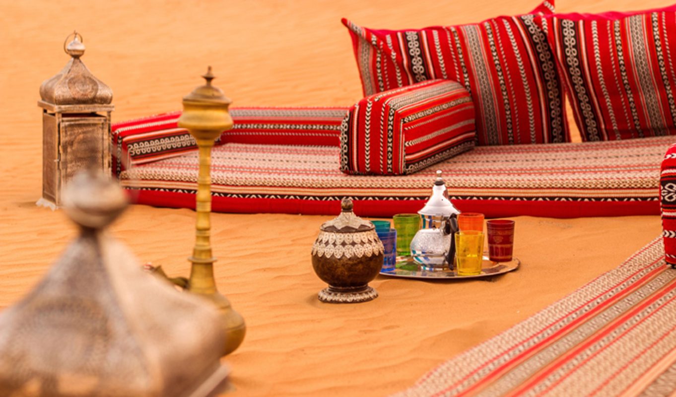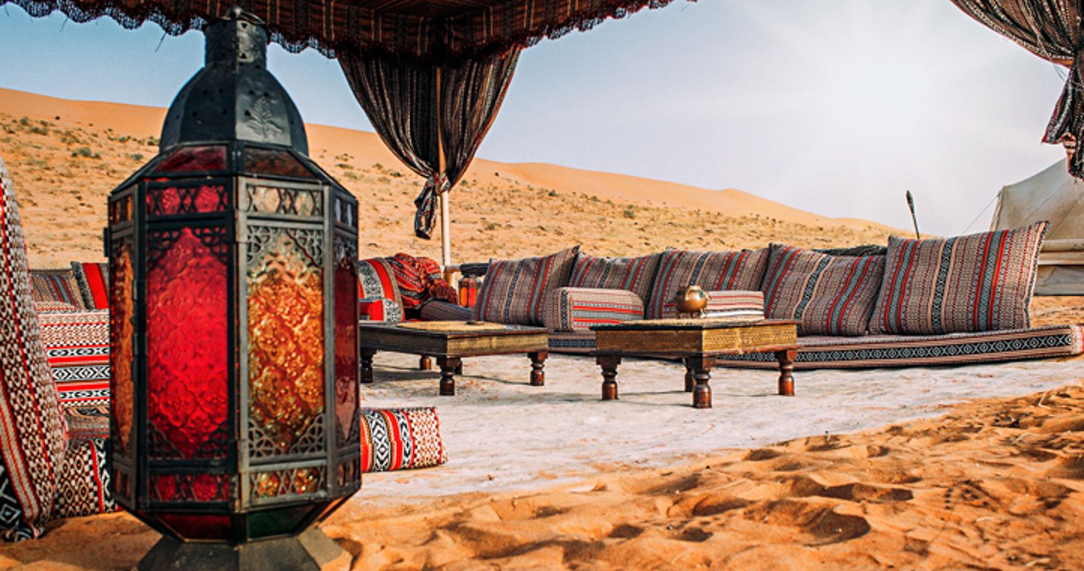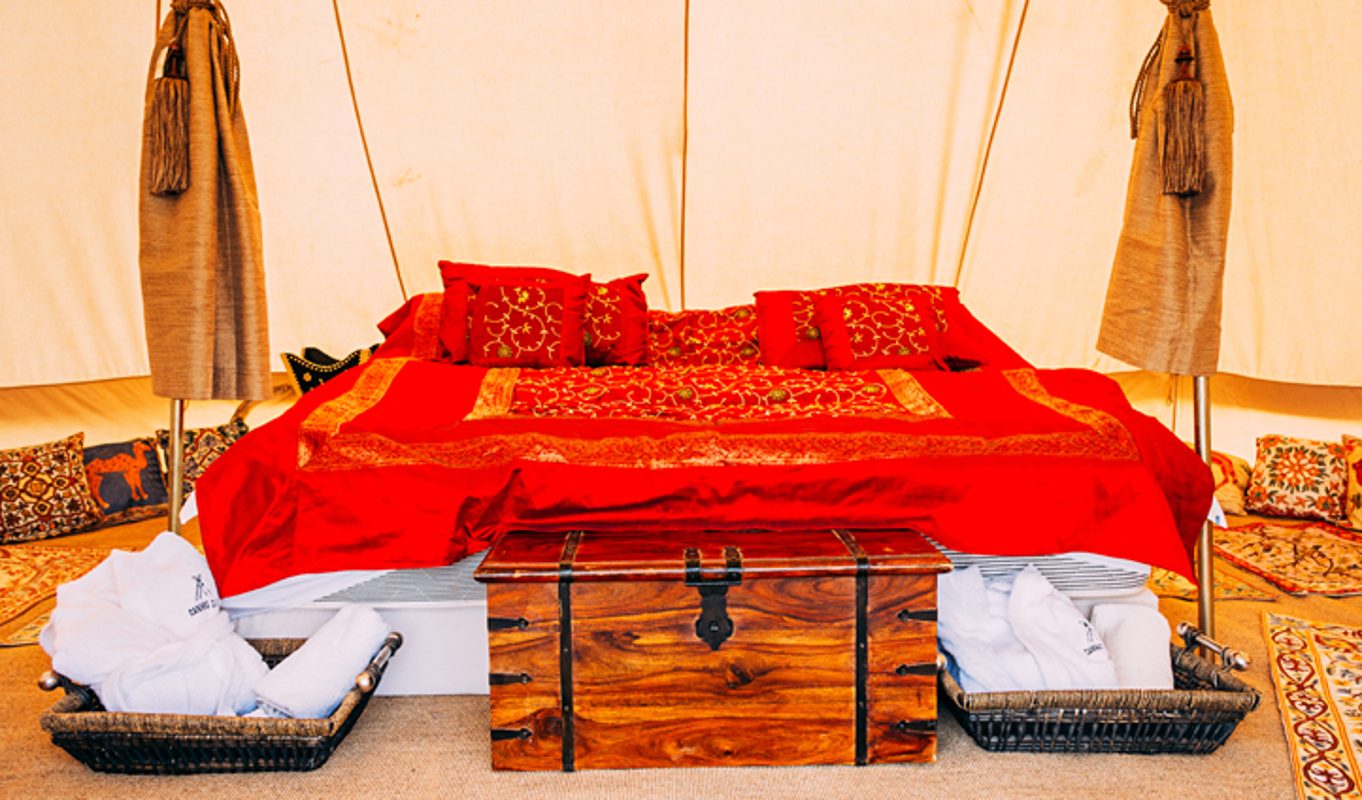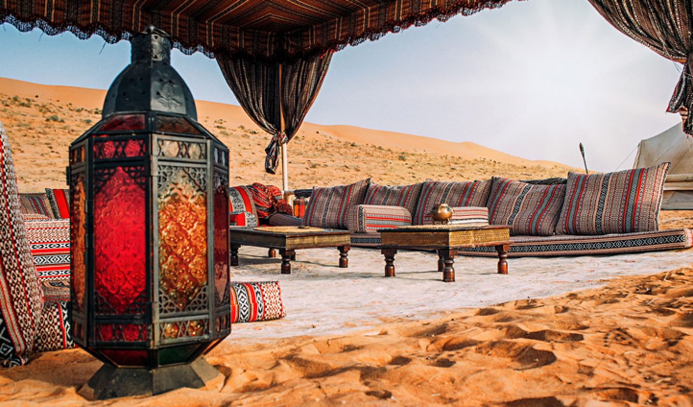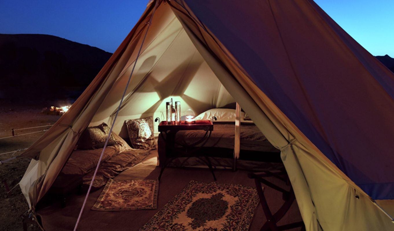 ‘Tent’ hardly seems the right word to describe the spacious desert mansions that Canvas Club delivers. Tasteful and traditional in equal measure, sleep under silk bedspreads, pad across oriental carpets and bask in the warm light of beautiful lamps. You can guarantee the perfect night’s sleep here – with endless starry skies above and silence all around. Your private Bedouin camp is made up of three tents: the bed, the bath and the majilis. The majilis, a Bedouin living room, is the perfect spot to admire the unique desert panorama as you lay back on luxurious oriental cushions before enjoying a gourmet candlelight dinner.