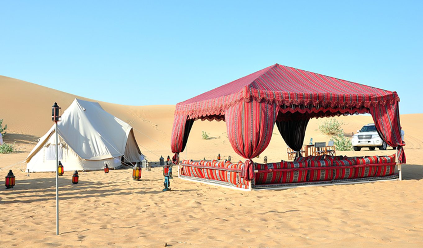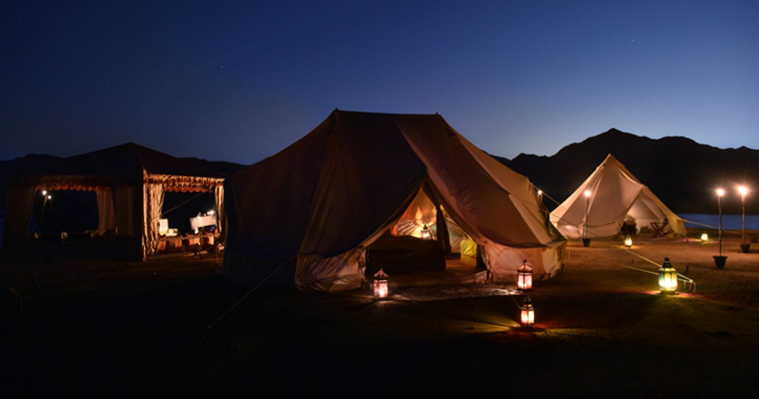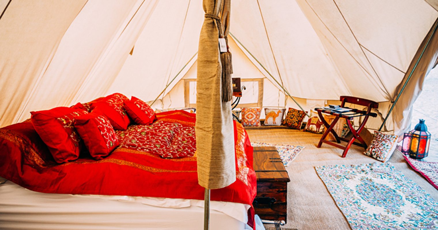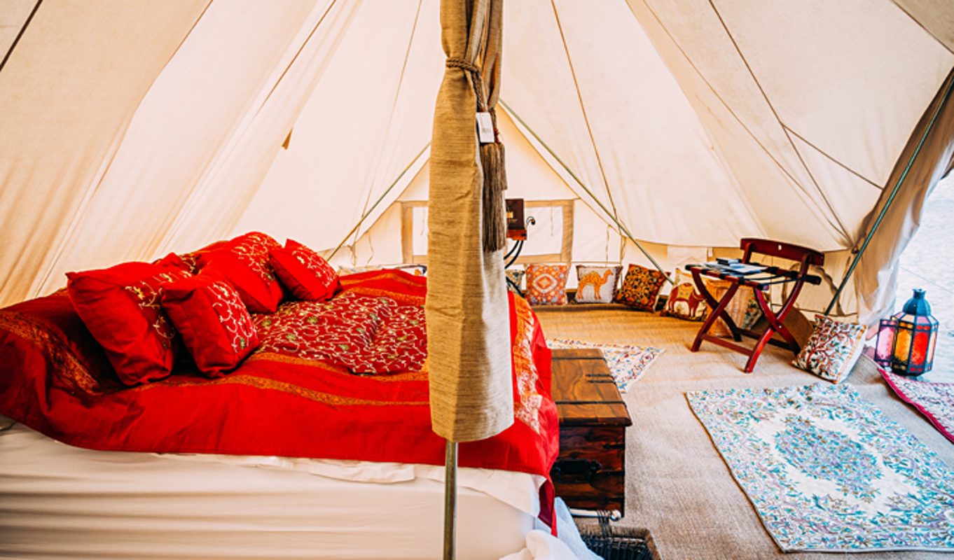 ‘Tent’ hardly seems the right word to describe the spacious desert mansions that Canvas Club delivers. Tasteful and traditional in equal measure, sleep under silk bedspreads, pad across oriental carpets and bask in the warm light of beautiful lamps. You can guarantee the perfect night’s sleep here – with endless starry skies above and silence all around. Your private Bedouin camp is made up of three tents: the bed, the bath and the majilis. The majilis, a Bedouin living room, is the perfect spot to admire the unique desert panorama as you lay back on luxurious oriental cushions before enjoying a gourmet candlelight dinner.