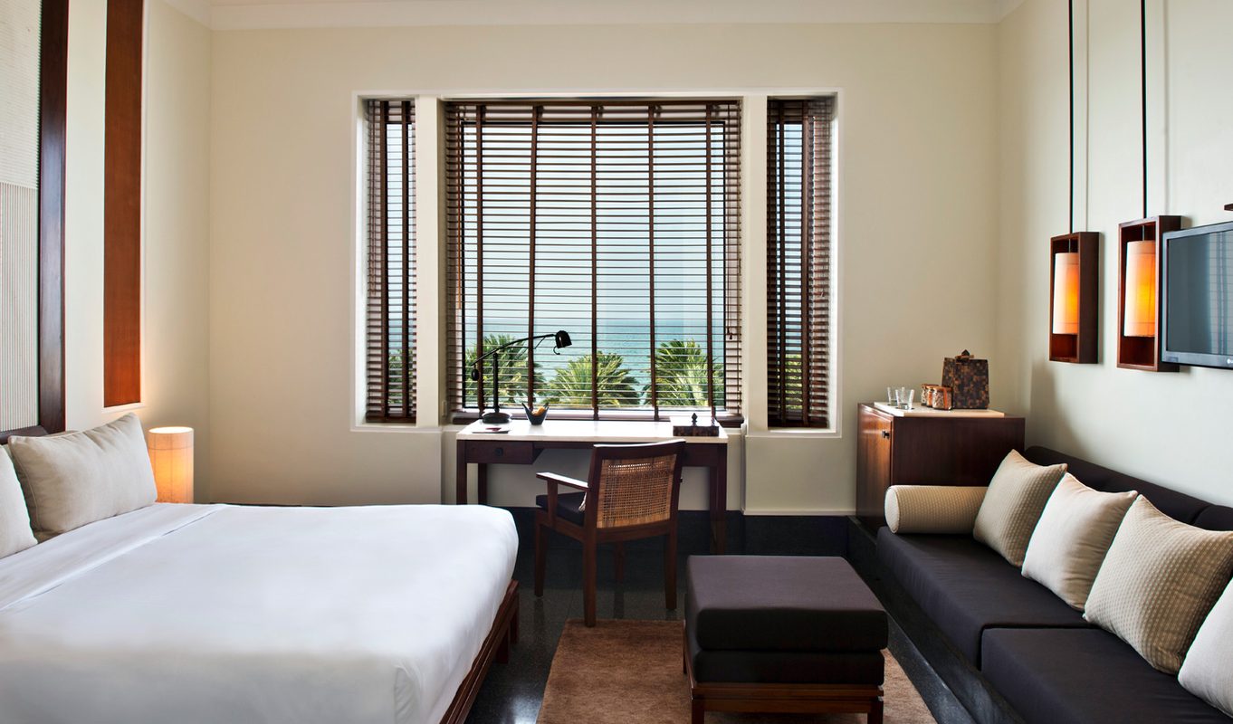 Reserve any one of the hotel’s 158 rooms and you’re in for a real treat. The all-encompassing beauty of the Gulf of Oman and the Jhajjar Mountains are only made better by oversized windows, sky-high ceilings and minimalist décor. Here, the landscapes give as much to the hotel as the furnishings. Step inside and it’s plain to see that The Chedi has truly mastered the art of marrying luxury with minimalism as well as cultural tradition.