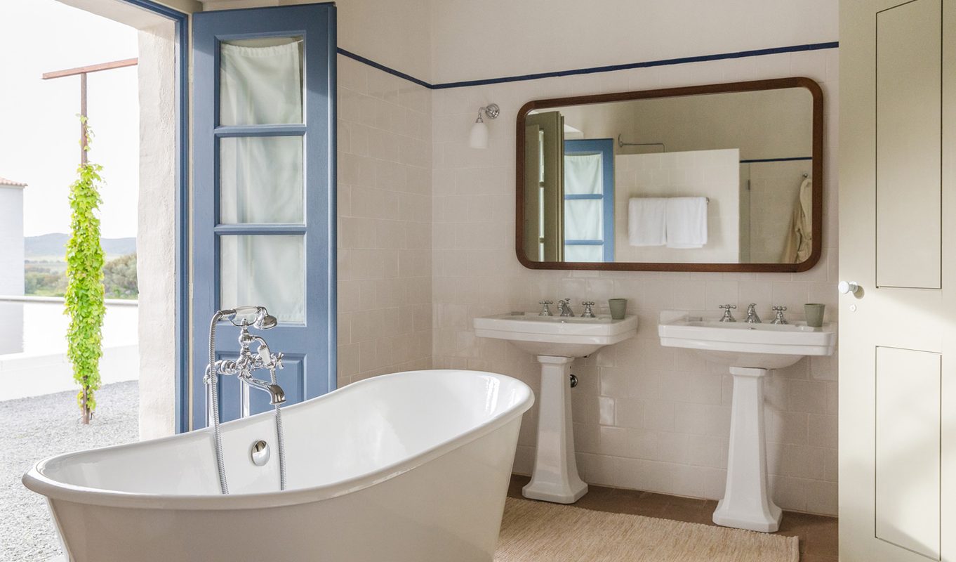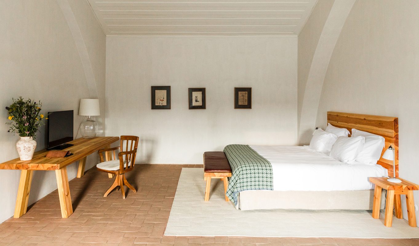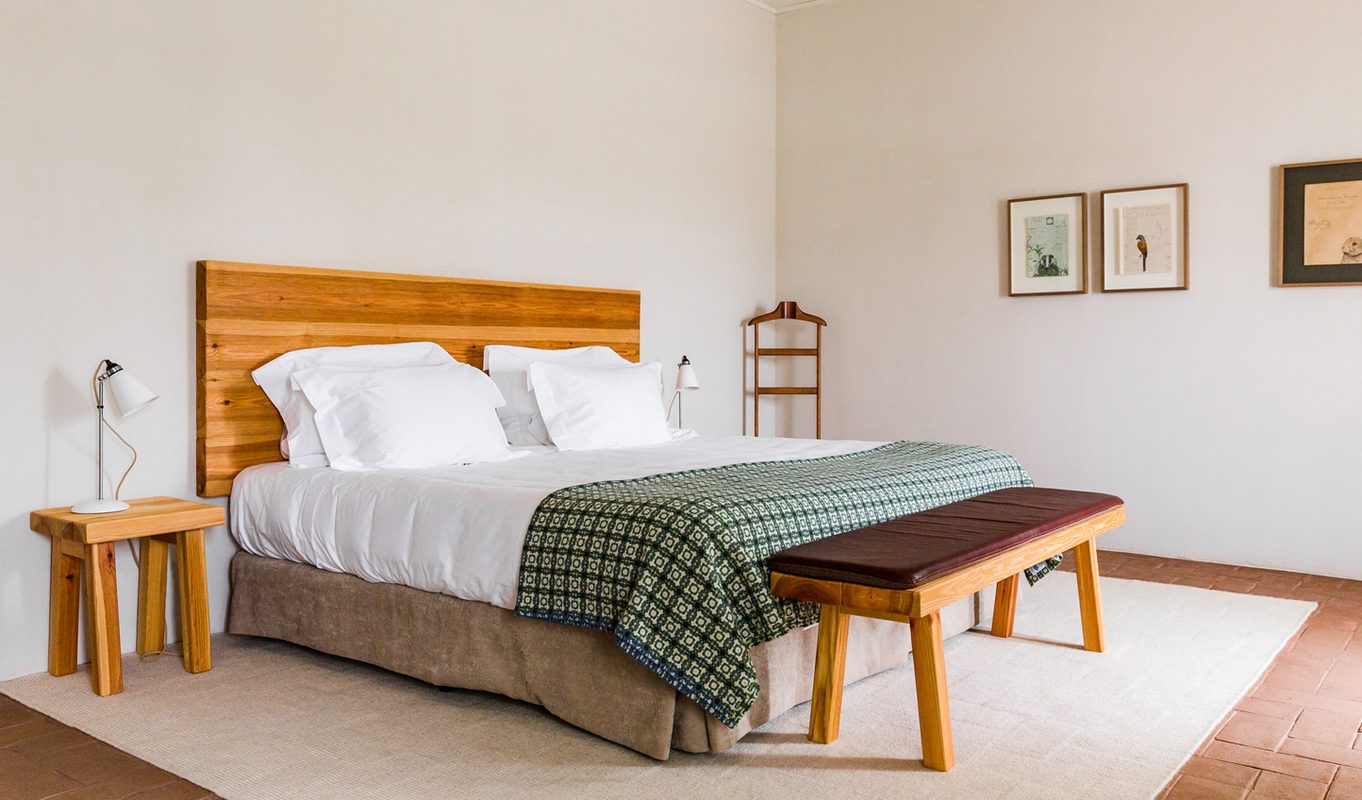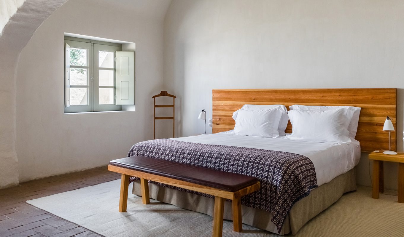 Dotted around the estate, you’ll find 40 rooms and cottages – each as charming as the last. Whitewashed walls and understated luxury form a backdrop to vintage Portuguese pieces and contemporary touches such as underfloor heating. Farm room windows open up onto breathtaking views of the Monsaraz foothills whilst rays of sunlight flood in to bathe cottage terraces in afternoon warmth.