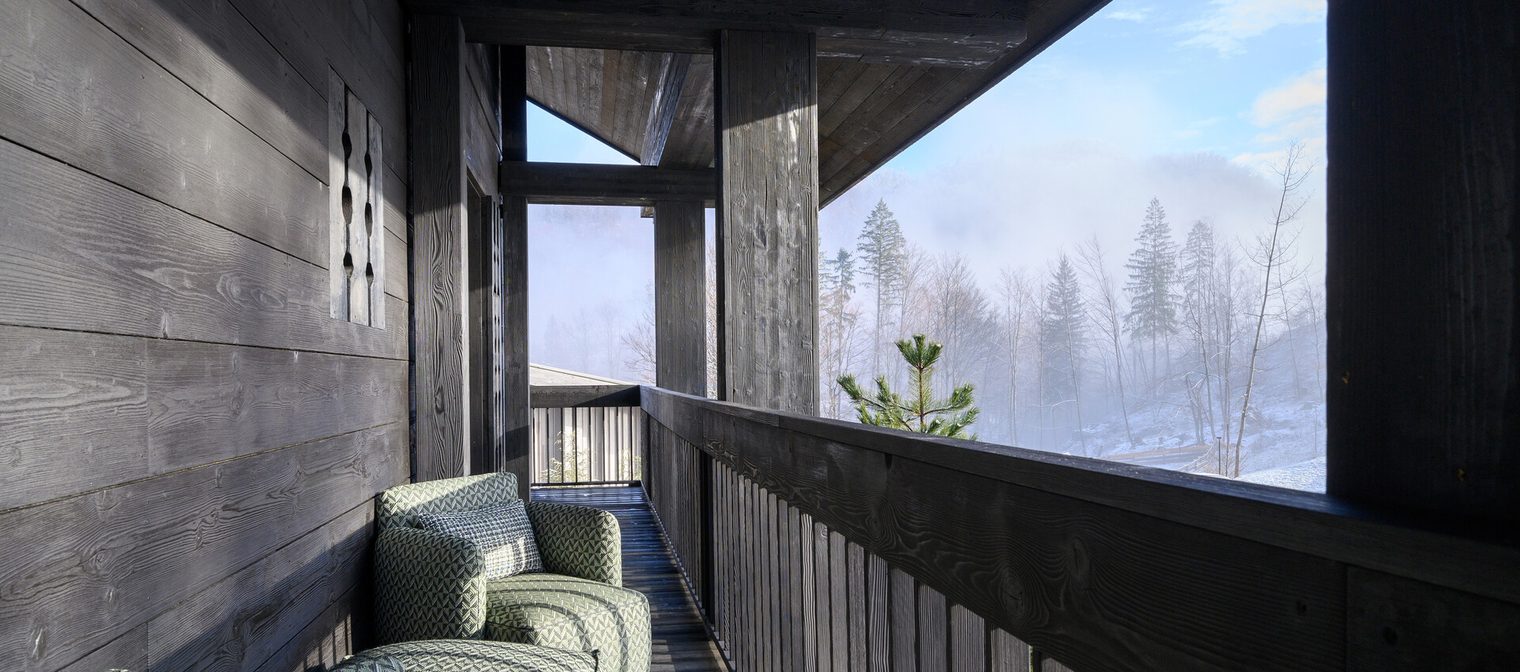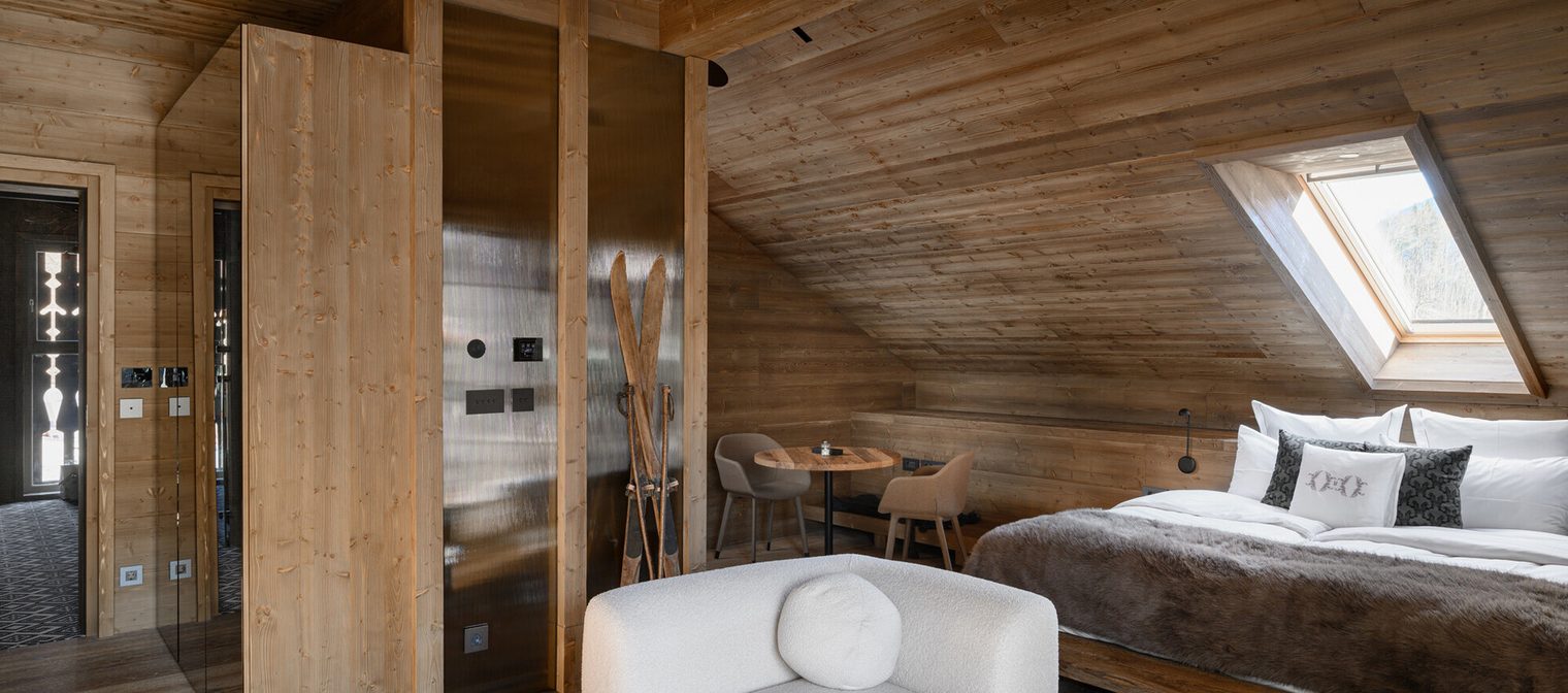 Four exclusive suites honor the aristocrats who shaped Vila Muhr’s history, each featuring wraparound balconies that frame the Julian Alps. The interiors blend timeless architectural details with contemporary alpine elegance – vaulted ceilings and original wood paneling complement modern furnishings and luxurious textiles. Each suite provides generous living spaces with separate sleeping quarters and lounge areas. Our pick, The Prince George, Duke of Kent suite elevates the experience with a private sauna and bar – sample the house plum brandy while taking in panoramic mountain views. Throughout, thoughtful touches like handcrafted furniture and locally sourced materials create an atmosphere of refined comfort that pays homage to the lodge’s noble heritage.