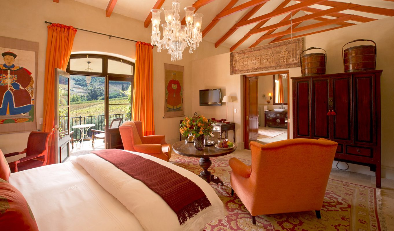 La Residence is only an hour’s drive from Cape Town in the renowned wine region of Franschhoek. Looking out over the valley of vines and towering mountains the views here are stunning. Nowhere else in this country can you peek out of your French colonial window to watch horses roaming outside in the valley.