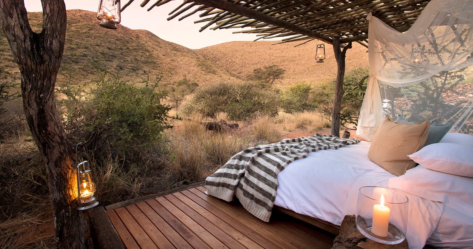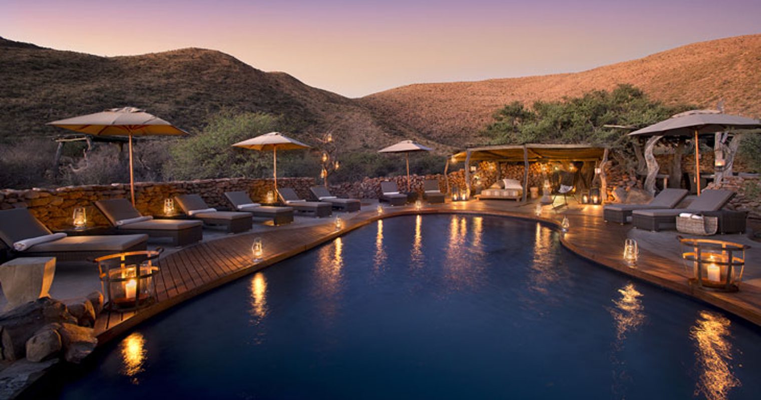 Nestled in the heart of the South Kalahari, the luxurious surrounds of Tswalu are the pinnacle of safari chic. Constructed from local stone and rich red clay, topped with traditional Kalahari thatch, the five suites and homestead are the perfect safari retreat. Float in the huge infinity pool, surrounded by endless, rolling landscapes or sit in a shady spot and relax with a good book. After a day’s game spotting, you can enjoy a hearty meal from the ever-changing seasonal menu – don’t miss tucking into the barbequed meat from the typical South African boma.