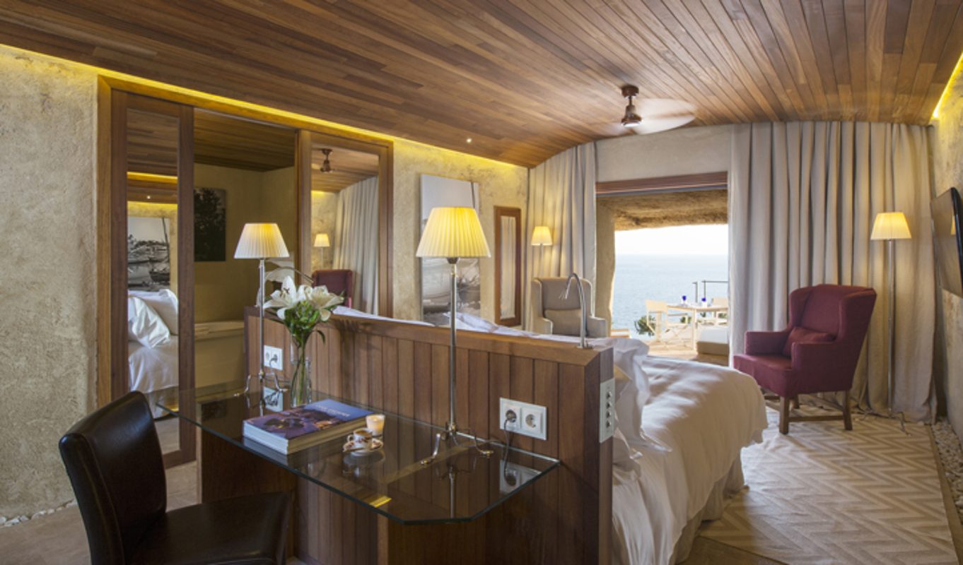 Marble floors and exposed walls are the frameworks of each of the stylish suites at Cap Rocat. With 22 suites and two bedrooms to choose from you’ll be torn between stunning sea views and rugged mountain vistas. Perhaps the perks of the El Cabo Suite which include a private pool and your very own terrace will make the decision easier.