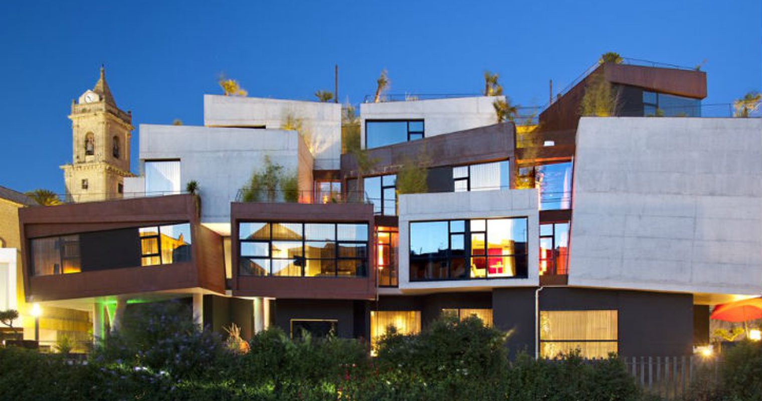 The strikingly edgy architecture of Hotel Viura promises an exceptional stay amongst beautiful vineyards and hillside. Architects Joseba and Xabier Aramburu created the contemporary piled boxed building with the regions rich wine culture at the heart of their design.