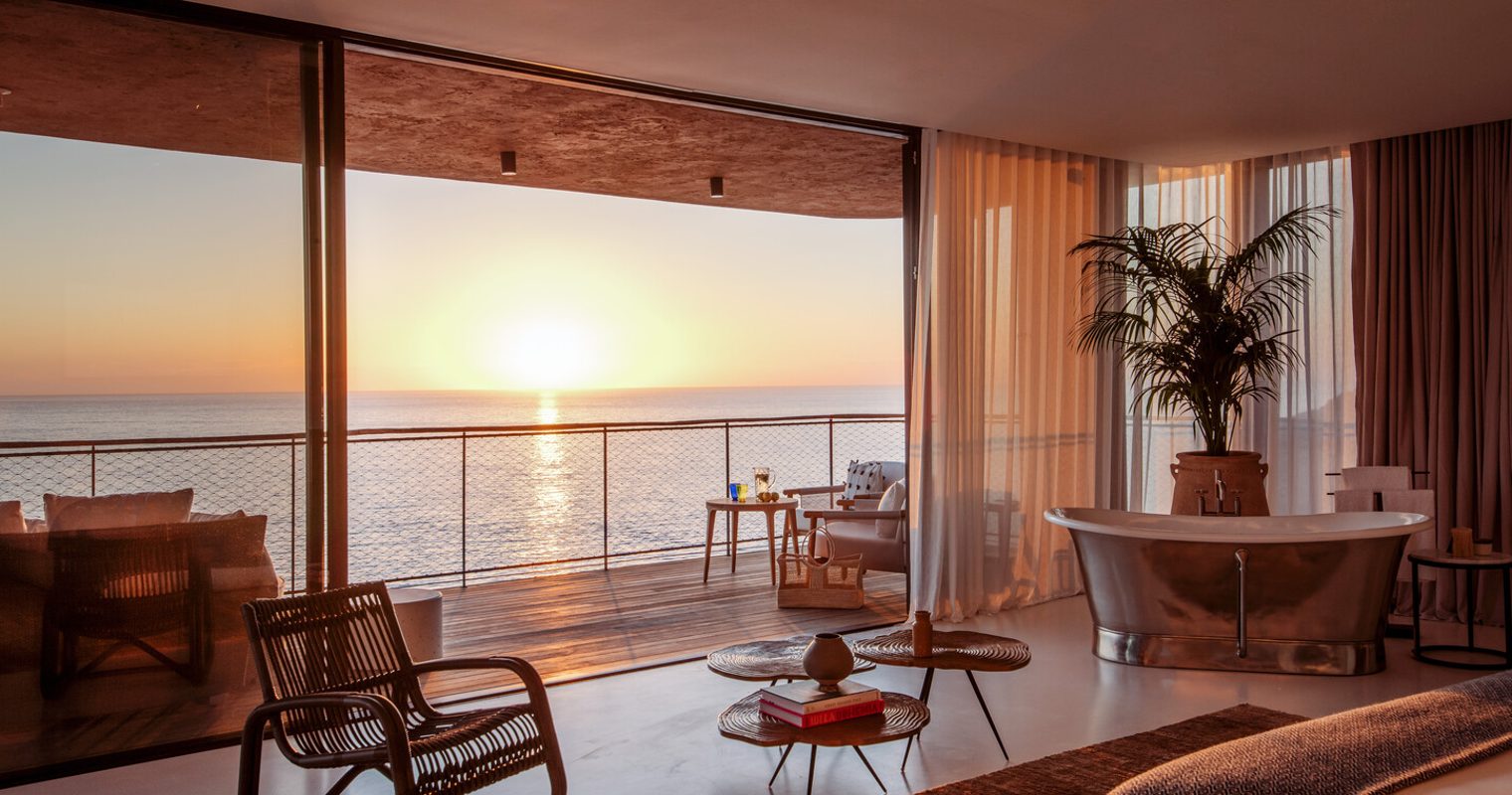 Whether opening onto private Mediterranean courtyards or peering out from the cliff face, the 137 rooms, suites, 19 townhouses and 2 mansions of Six Senses Ibiza are united by a deep sense of privacy. The design is both light-filled and contemporary, with panoramic terraces and cavernous bathrooms. But it is also deeply respectful of local heritage with natural materials and warm hues of moss green and dusk pink that soothe the soul. There’s plenty of scope for innovation too, no more so than in the Cave Royale where a grand piano and full bar take centre stage before giving way to a secret door and an adjoining recording studio. For those travelling with friends or family, the townhouses offer a space to call your own with private pools and gardens and plenty of space to entertain.