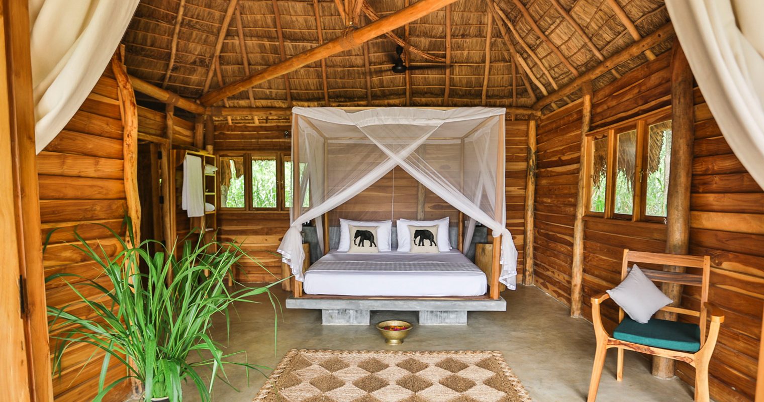 You’ll find Gal Oya spread across 20 acres of private land, set against a backdrop of low lying mountains and forest canopies in Sri Lanka’s most untouched national park. The park is home to the country’s largest lake and is the only place in Sri Lanka where you can embark on water safaris; expect to see wild elephants swimming from island to island.
