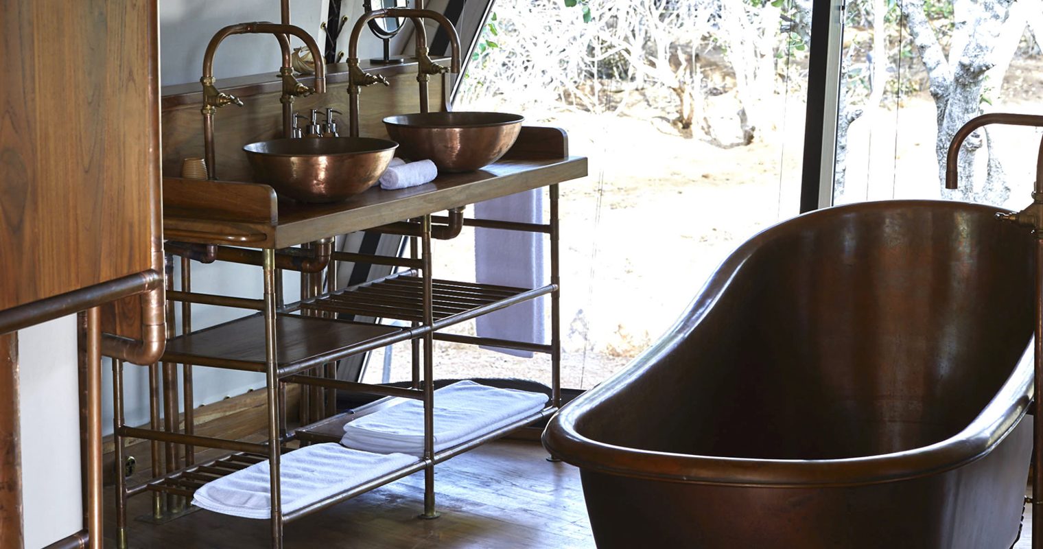 The walls may be made of canvas, but these are far from your ordinary ‘tent’. In fact, they are cocoons – warm and inviting with teak floors complementing dark leathers, freestanding copper bathtubs and silky-soft linens atop sumptuous four-poster beds. Clustered around water holes and with vaulted ceilings and panoramic jungle views, there’s wildlife to spot from the moment you wake up. Dotted along the beachfront, you’ll also find four more cocoons, each with their own private plunge pool. Whilst for those of you with the little urchins in tow? Wild Coast has an answer for that too with eight cocoons featuring adjoining ‘urchin’ tents, perfect for keeping the little ones entertained whilst still giving you that much-needed space for a bit of shut-eye.