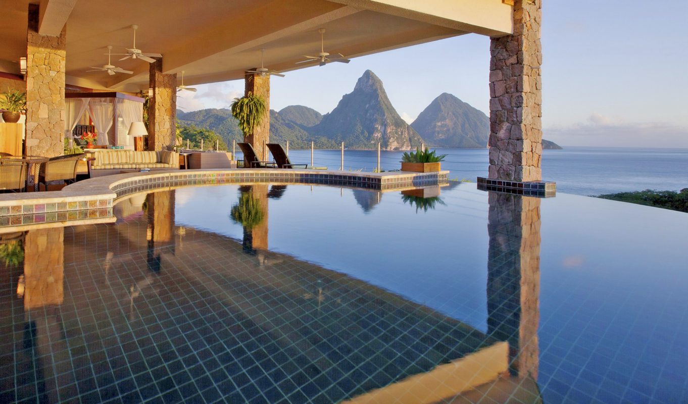 The views are what set Jade Mountain apart from the rest, and as difficult as it will be to pull yourself away from the comfort of your island sanctuary, don’t forget to venture up to the hotel’s celestial terrace just before sunset. Perched at the top of the property, you are granted a 360-degree view of ocean, beach, rainforest and mountains all to the backdrop of the pink-tinged sky brought on by the setting sun.