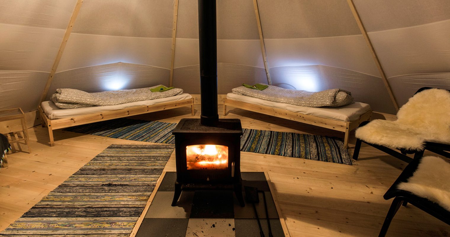 Your room at Aurora Safari Camp is a traditional Lavvu tent, a type of Nordic Tipi. The inside is fire-heated and comes complete with Arctic sleeping bags and comfortable beds. There’s another tent on-site providing a lounge and bar, as well as a traditional sauna close by, so you’ve got plenty of places in which to kick back and unwind after a day of arctic exploration.