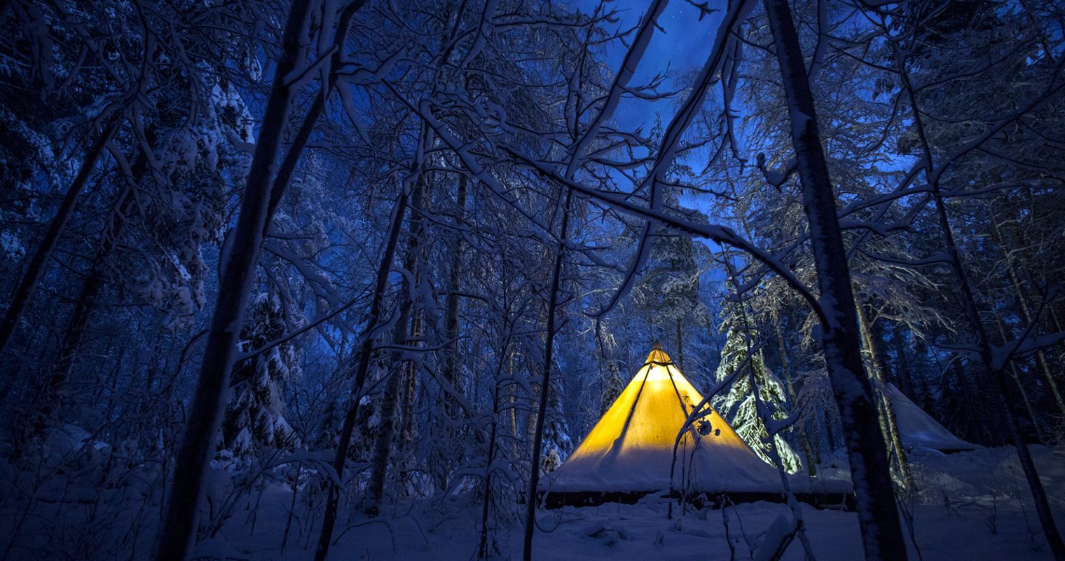 Aurora Safari Camp is nestled in the wild forest of the Råne River Valley north of Luleå, a positioning that offers stunning views of the surrounding river, lake and mountains.