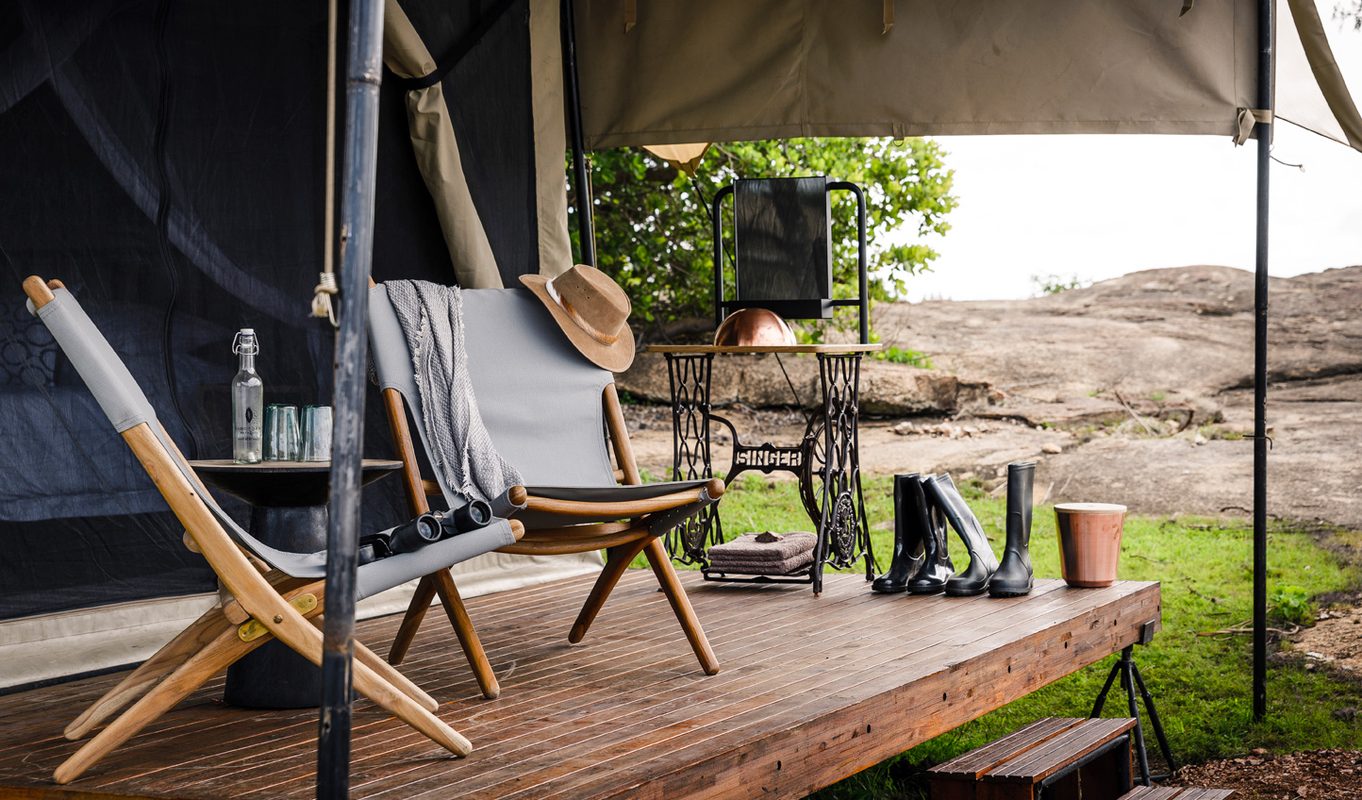 Taking inspiration from 19th-century explorers, the ten tents are a contemporary take on the classic campaign tent. Everything here is designed to be perfectly portable and with sand-coloured canvas walls and authentic bucket showers, the camp travels with a small environmental footprint and a light ecological shadow. Each tent features a wooden porch, perfect for that morning cup of coffee, a stylish bedroom with canopy bed and that all-important ensuite bathroom. Oh, and your own personal attendant who will make sure your shower is at the perfect temperature for whenever you need it.