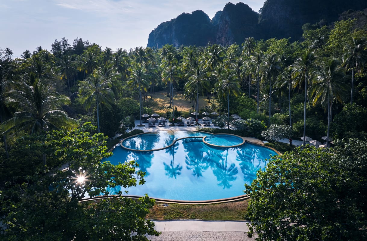 On the edge of the Krabi Marine National Park and hiding right in the heart of the magnificent Phranang Peninsular is Rayavadee. This unique and luxurious hotel nestles discreetly amongst lush tropical gardens and exotic coconut groves, not forgetting the jungle foliage, clear waters of the Andaman Sea and backdrop of sheer cliffs which make for a diverse yet astonishing view. To complete this perfect Thai bolthole, add in fine cuisine, top-notch service and one of the most unique relaxations spas in the country.