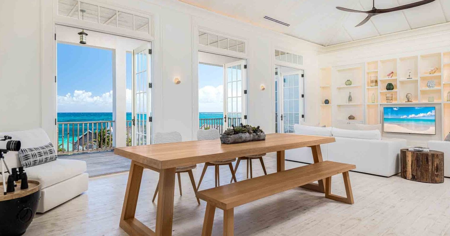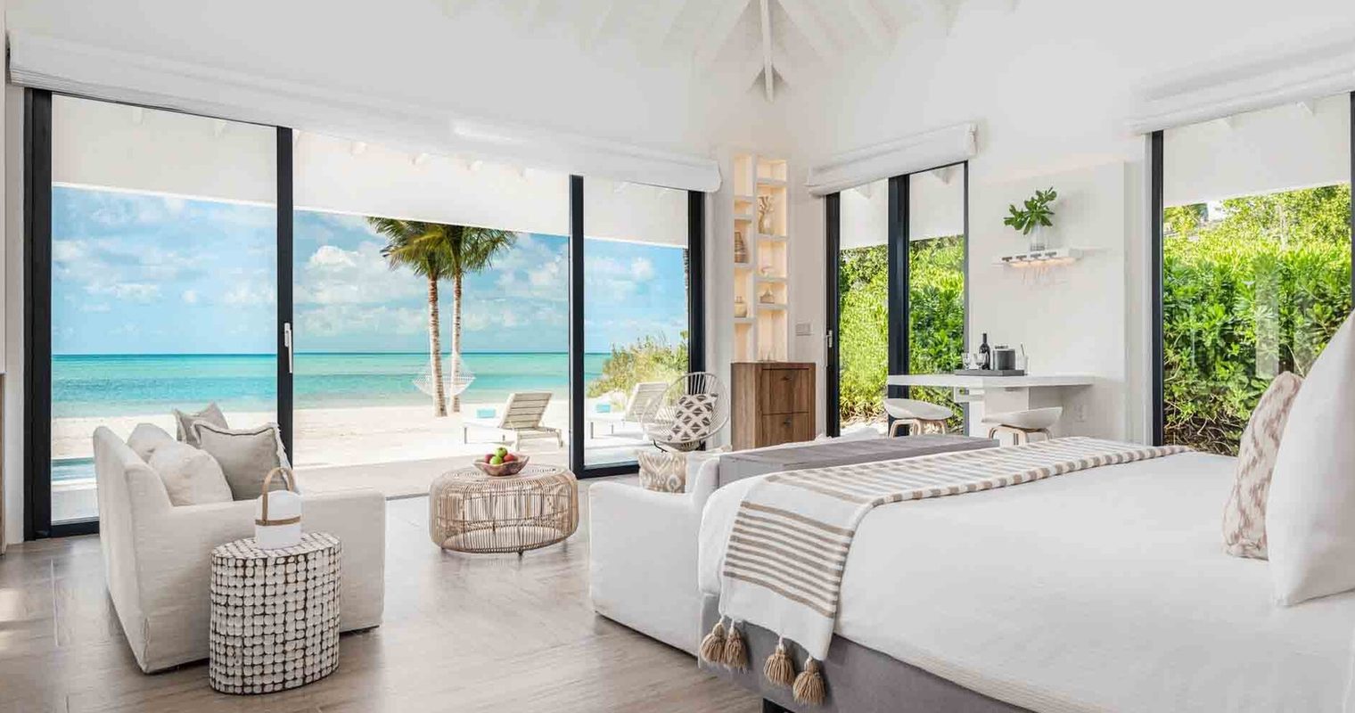 Villas here are built for space. Each comes with a private pool and direct beach or water access, and the beachfront options are the clear standout with uninterrupted views across the Caicos Bank. The sand and sea are immediately at hand. Interiors are clean and considered, with open-plan living areas, island-appropriate materials, and well-equipped bathrooms. Several villas connect or reconfigure for larger family groups, with layouts that give both children and adults room to settle in.