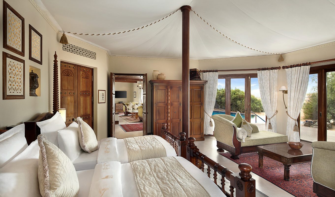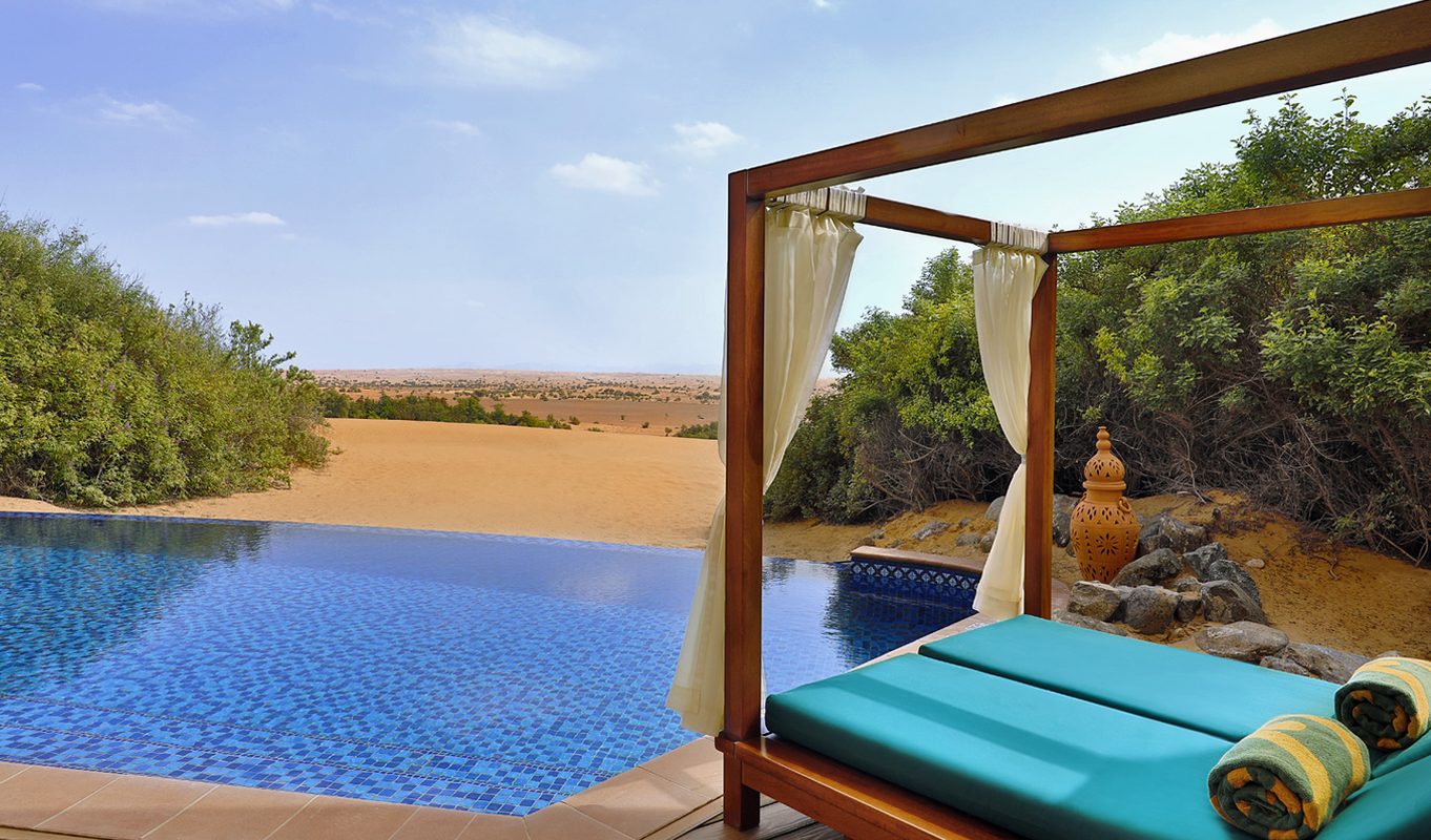 Desert luxury at its finest, check in to one of the 42 suites to find private pools surrounded by wooden decks with panoramic views of the mountains and sand dunes, bathrooms with walk-in showers and king size beds to fall into. The Arabian camp-like resort boasts lavishly decorated guestrooms with authentic handcrafted Arabian furnishings and swathes of desert hues. Each room also has thoughtful touches, like binoculars and an easel with art materials just in case your creative instincts are inspired by the landscapes.