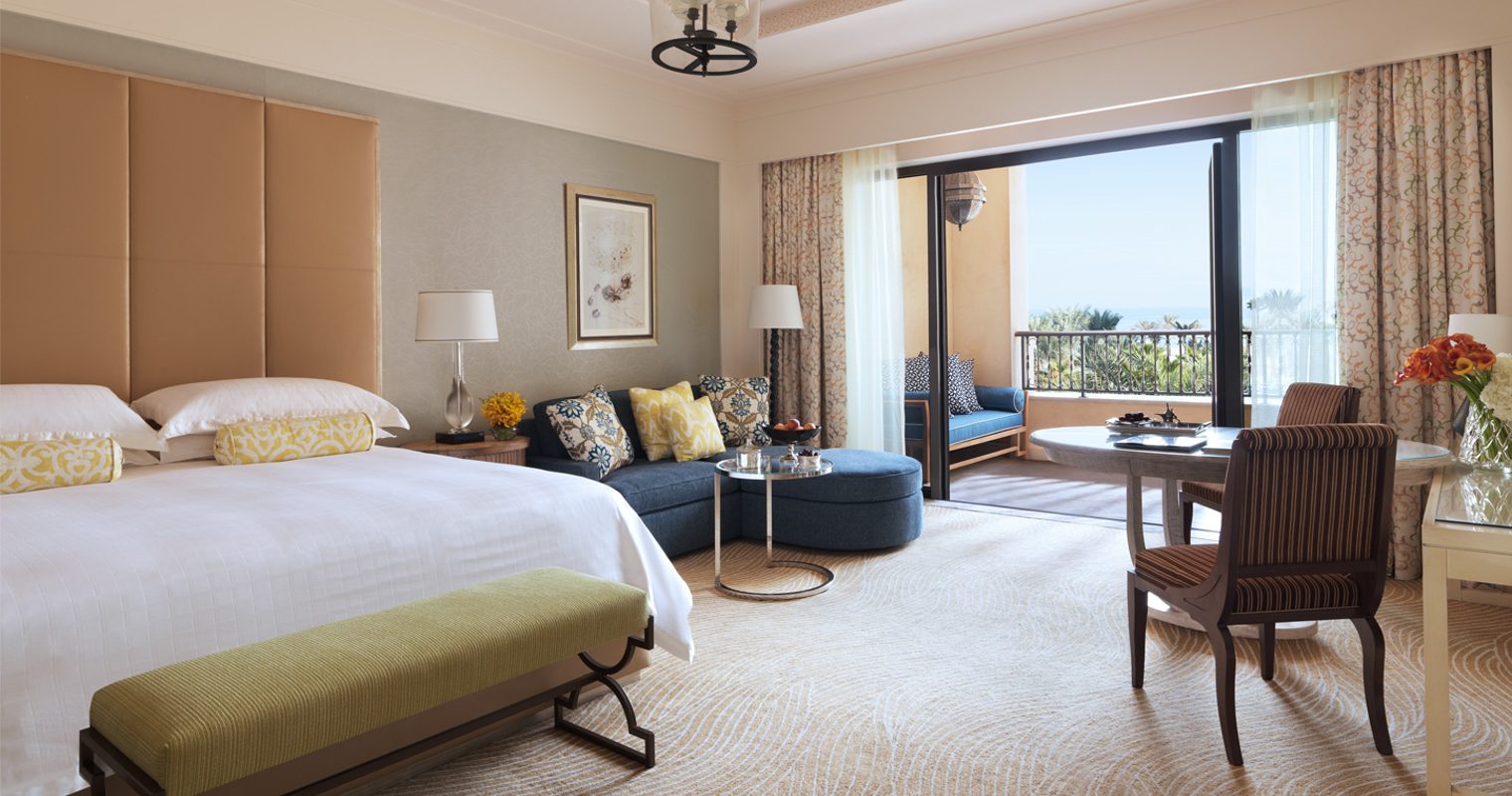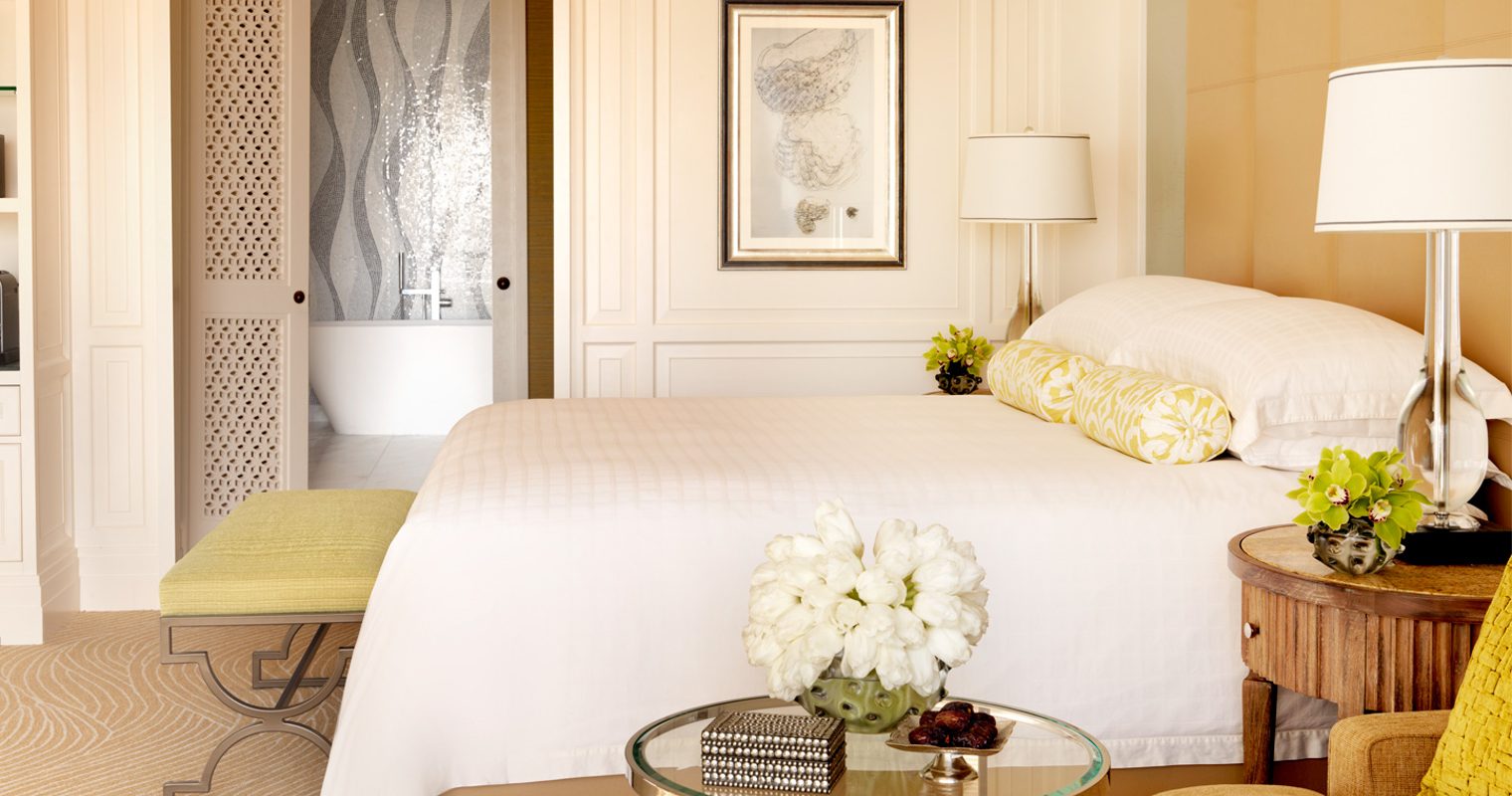 With each of the 237 rooms and suites at Four Seasons Jumeirah Beach boasting a private balcony, the views really do take centre stage. Classically elegant with Arabian flair, the design blends Middle Eastern motifs with a contemporary decor and hues of powder blue, emerald green and desert taupe, perfectly offsetting the varied landscapes they look out to. The only question left: city or sea view? We’ve tried both and you can’t beat the early wake up call to watch the sun creep up behind the Burj Al Arab.