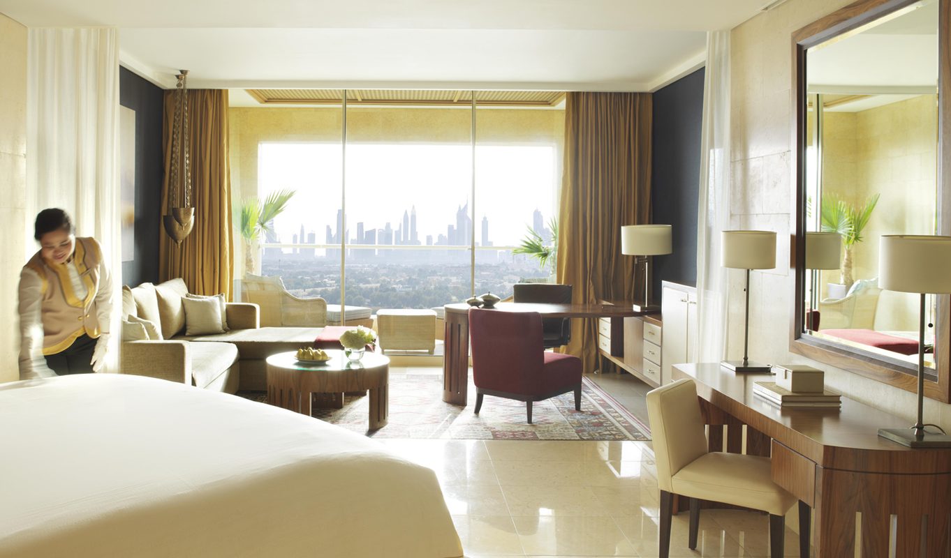 Keeping up with the Raffles tradition, there is an abundant selection of rooms on offer here with most of the inspiration for the interiors and decor coming from the Middle East and Asia. The rooms and the suites at Raffles Dubai are some of the largest in the city. The Signature Rooms alone cover more than 70 sq. m and each come with a private balcony and a view of the city skyline. If you really feel like splashing out, then opt for the Royal Suite. With a four poster bed, separate his and her ensuite bathrooms and your own dining room featuring a separate kitchenette with access for butlers, it’s no hard thing making this room your private sanctuary.