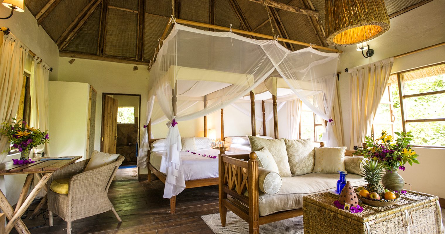 Each of the eight traditionally-styled bandas at Bwindi Lodge are tucked away in their own patch of lush vegetation, guaranteeing absolute privacy. Glass-fronted, with private balconies and terraces, they act as your own personal window onto the forest as you wake up to chimpanzees swinging through the branches and colourful birds flitting by. A place where luxury and eco-sensitivity go hand in hand, you can expect crisp linens and stylish ensuites alongside local handicrafts – just don’t go looking for WiFi, that’s strictly reserved for the main lodge.