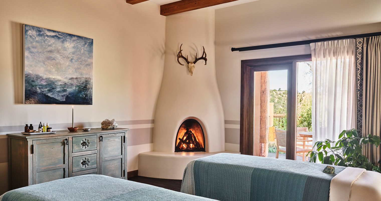 Across the 317 acres, you’ll find just 100 guestrooms, suites and casitas. Whilst the 12-bed Bunkhouse is perfect for multigenerational families looking to connect, our favourites are the Kiva Suites. Sitting in secluded locations, they open up onto a sunrise best viewed from your private plunge pool by the warmth of the outdoor fireplace. All of the rooms are authentically Southwestern in design with exposed beams and rich, earthy textures throughout. There’s also a traditional kiva fireplace with extra warmth brought by bold Navajo patterns.