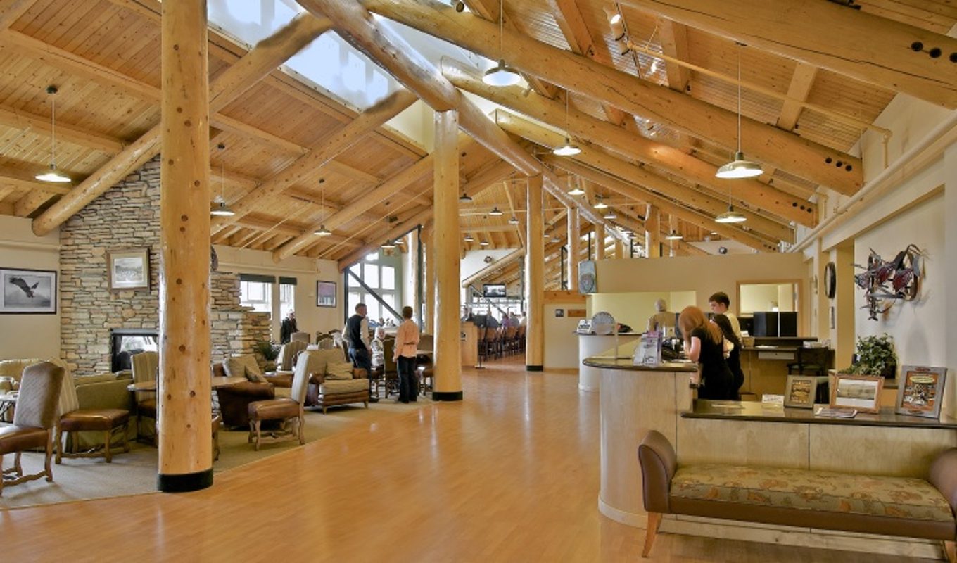 The huge timber-framed lobby of the lodge is a focal hub of the hotel, with vaulted ceilings, large windows and stone fireplaces, and is the perfect place for a warming hot chocolate after your active day. The Alpenglow restaurant also has the panoramic views common to the rest of the hotel, and a classic Alaskan offering to delight your tastebuds. Rest assured your hard work during the day will be heartily rewarded with the restaurant’s eclectic cuisine and fine wines, surrounded by trees and one of mother nature’s most perfect canvases.