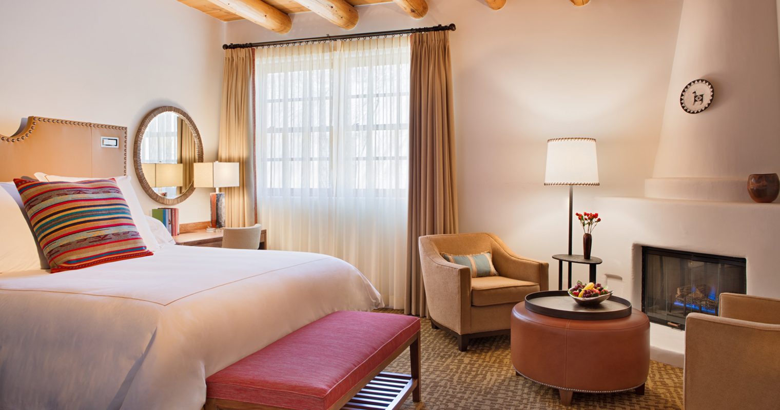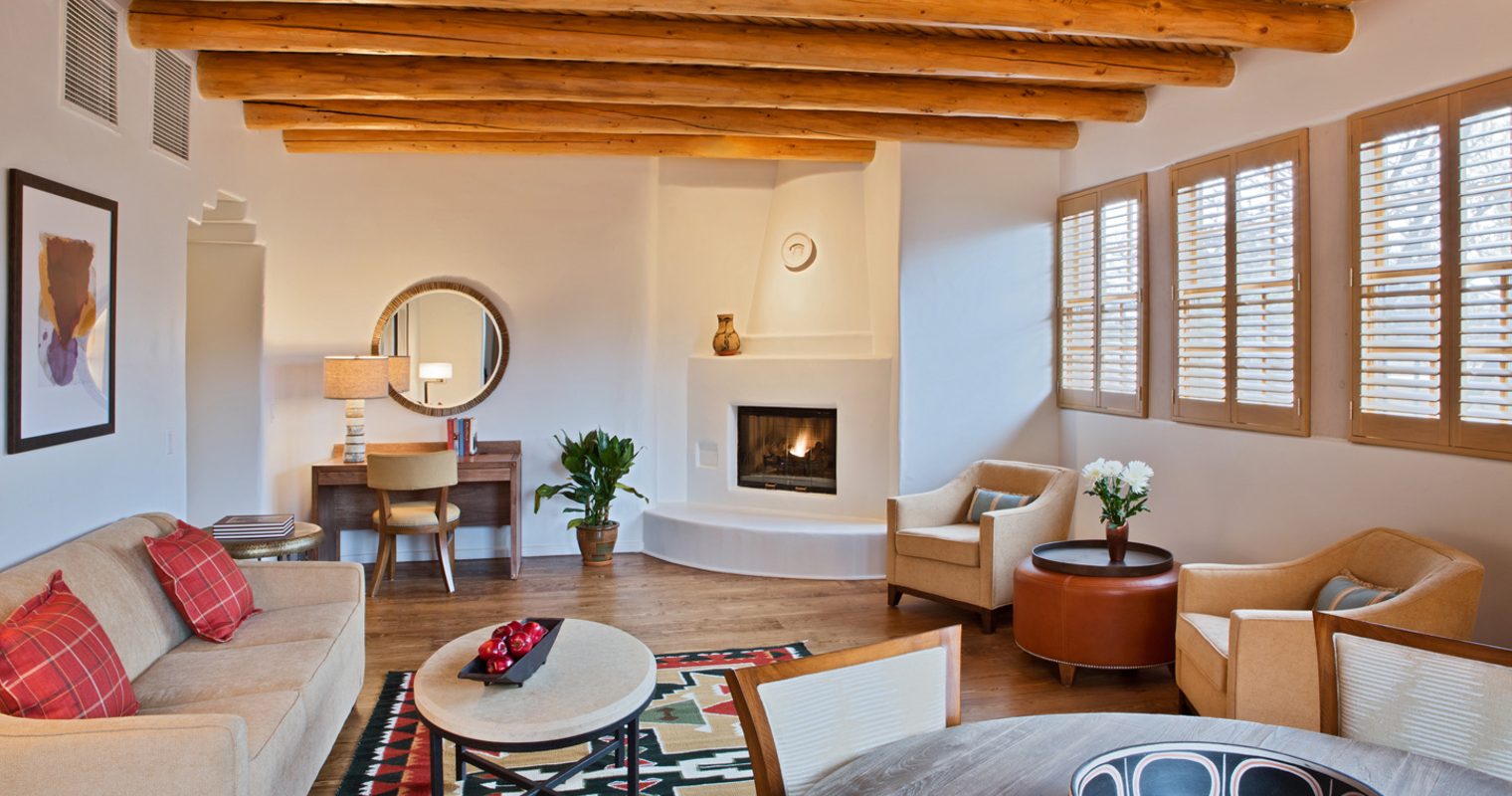 Each of the 58 rooms and suites at Rosewood Inn of the Anasazi exudes warmth and comfort. Beneath traditional viga and latilla ceilings, you’ll find authentic local art and indigenous textiles which dance in the light of a gaslit kiva. Despite all this cosiness, the rooms remain incredibly spacious, with each offering its own sitting area and Junior Suites also opening out onto private balconies.